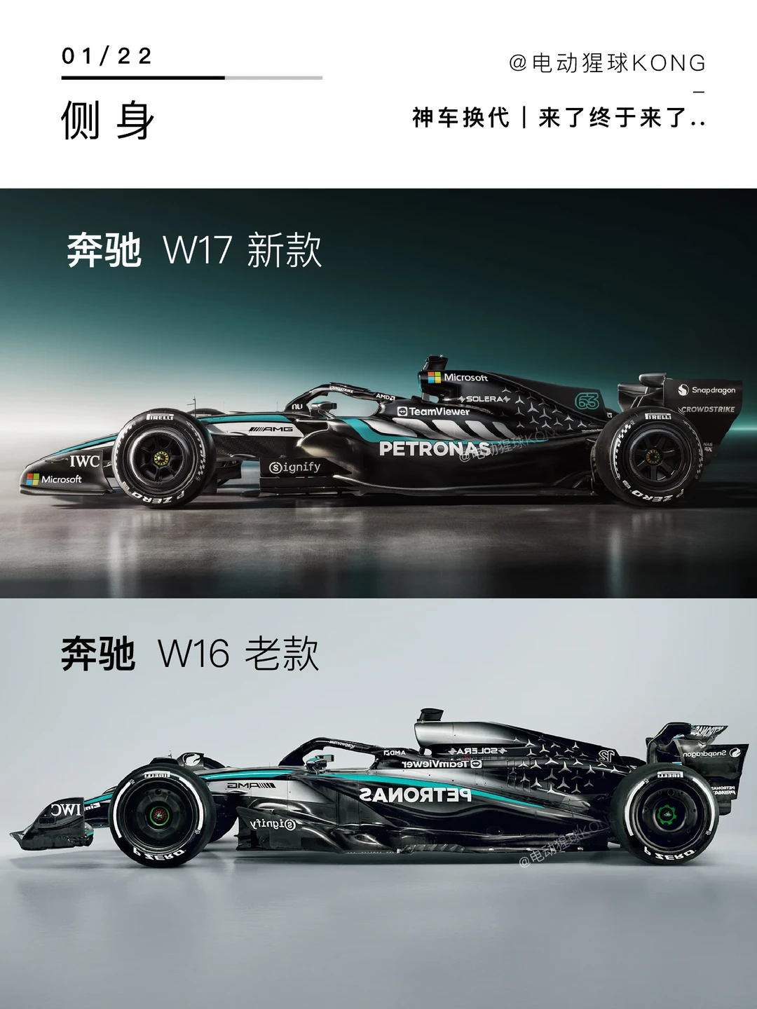 奔驰F1车队新车W17发布,继续采用银黑涂装,头顶的进气口变黑色加了新赞助,看来红色进气回归无望了,虽然都很帅,但还是觉得W16更帅一点,你们觉得呢?