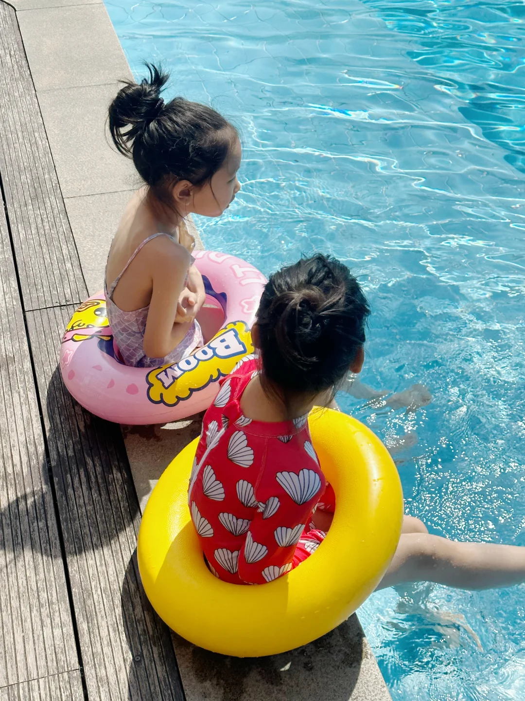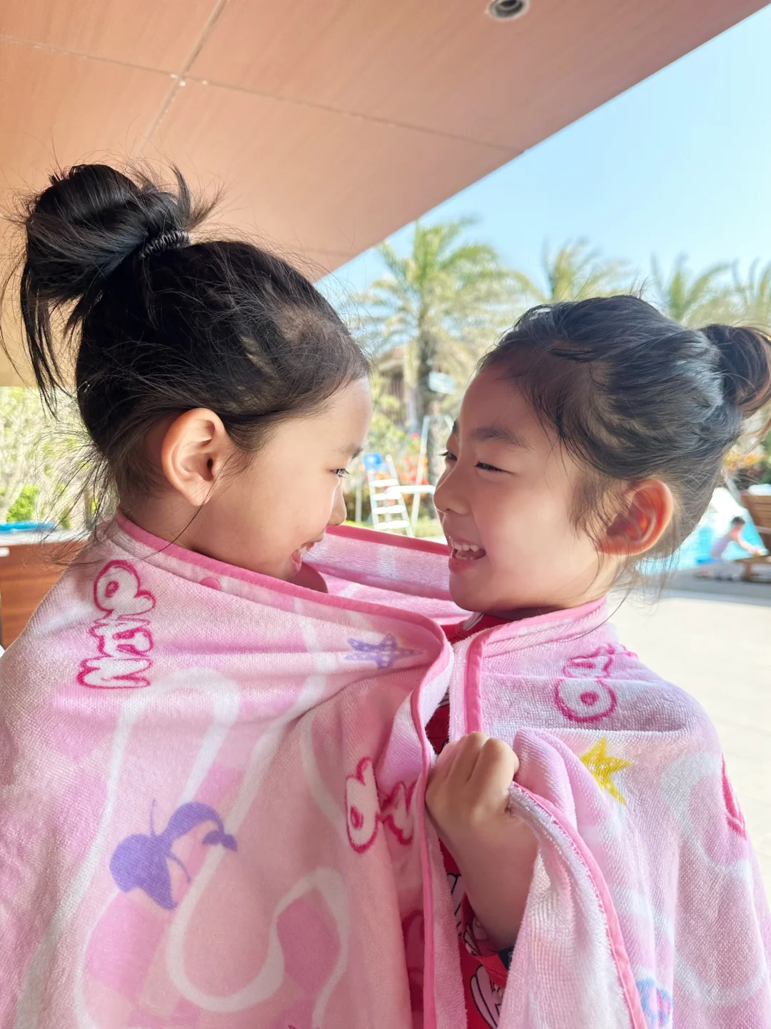 妈妈们要美,娃娃们要嗨 我们的充电日,孩子们的撒欢日 这时候的万宁早晚还是比较凉的,白天泳池水温也不太高