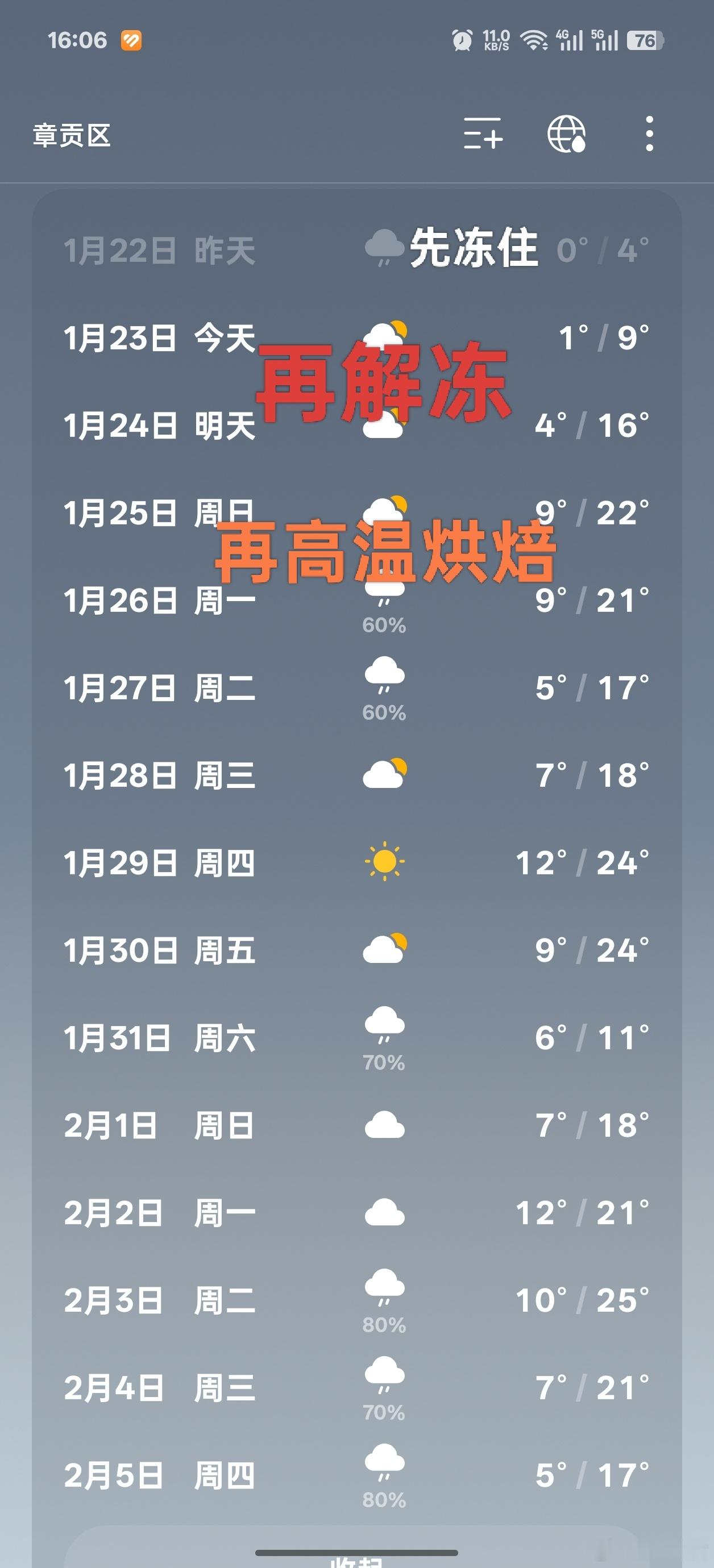 给大家感受下江西赣州的天气,先冻住、再解冻、再高温烘焙…很形象了!