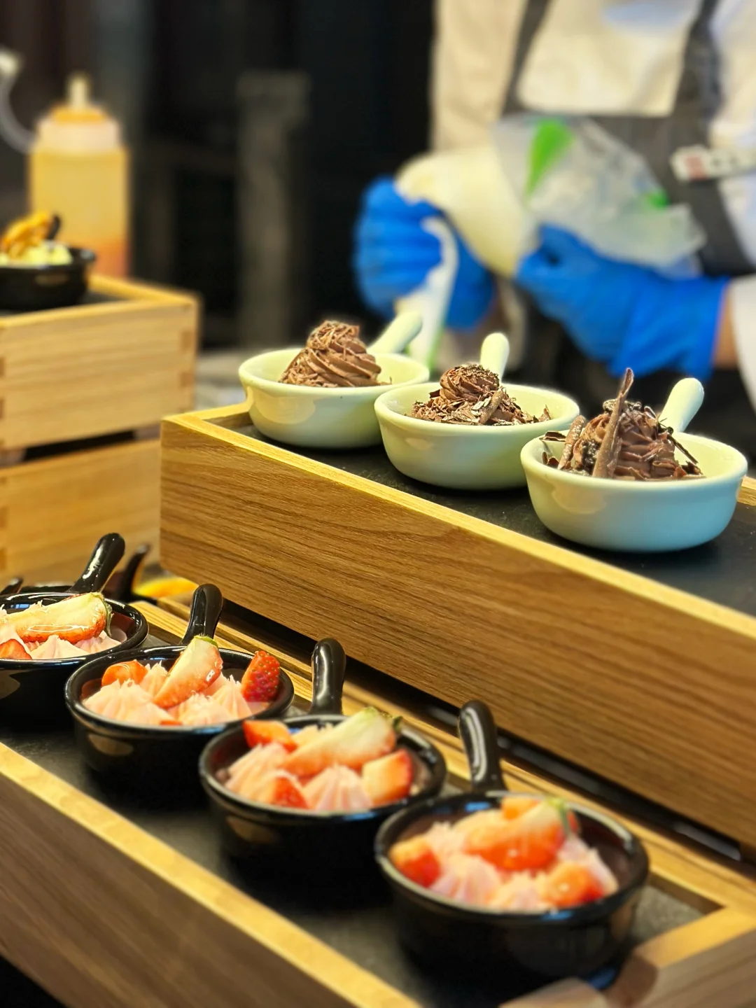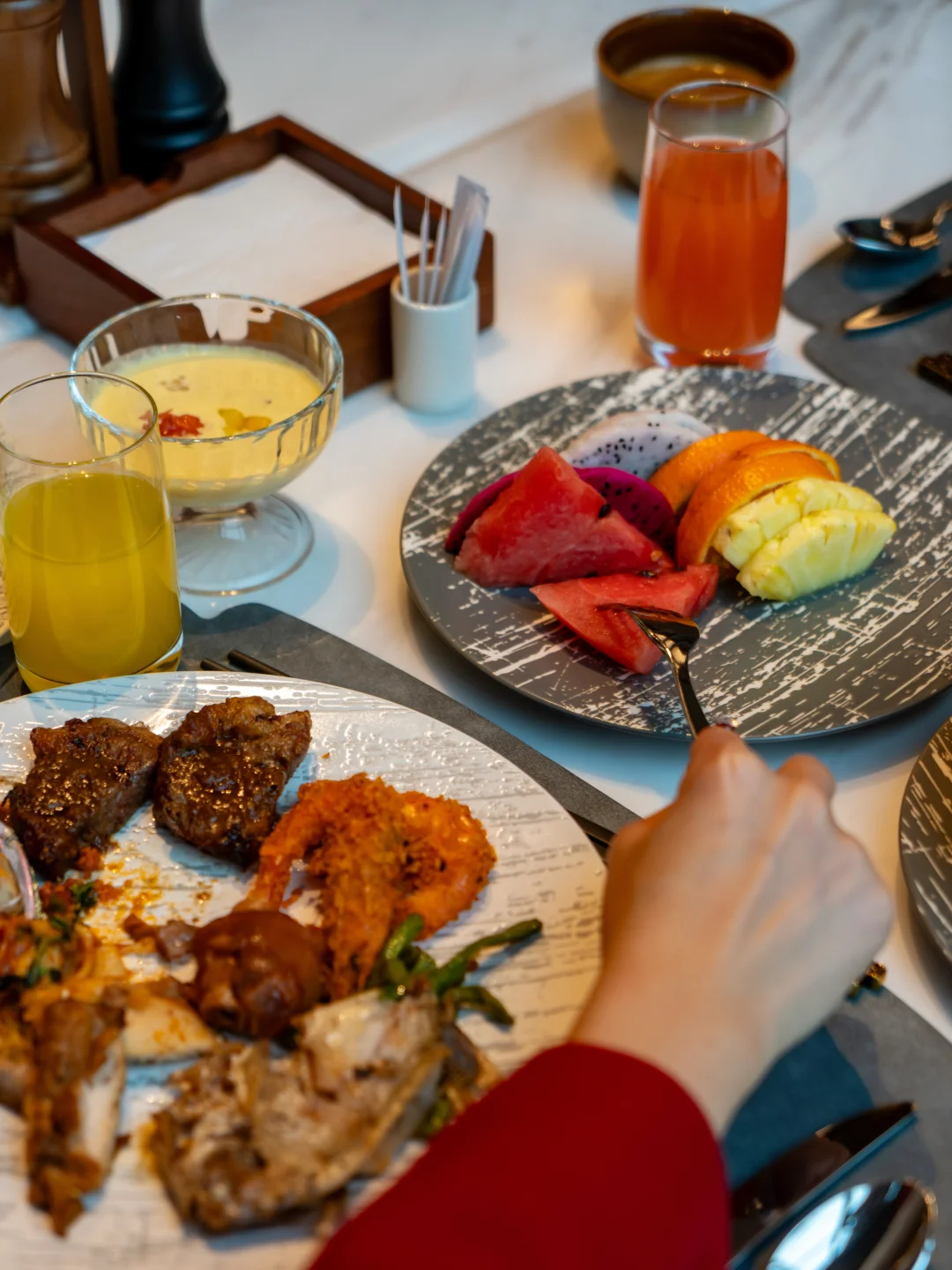 重点夸夸华邑的鲜艳全日餐厅!作为开业后已开放的核心餐饮区,自助餐品质直接拉满,完全不像新开业的磨合状态。肉类选择丰富到眼花缭乱,现煎牛排纹理清晰、汁水饱满,外皮焦香内里软嫩,品质在线;还有各类烧烤、涮肉,冒菜区的牛羊肉卷新鲜紧实,搭配秘制蘸料香到舔盘。