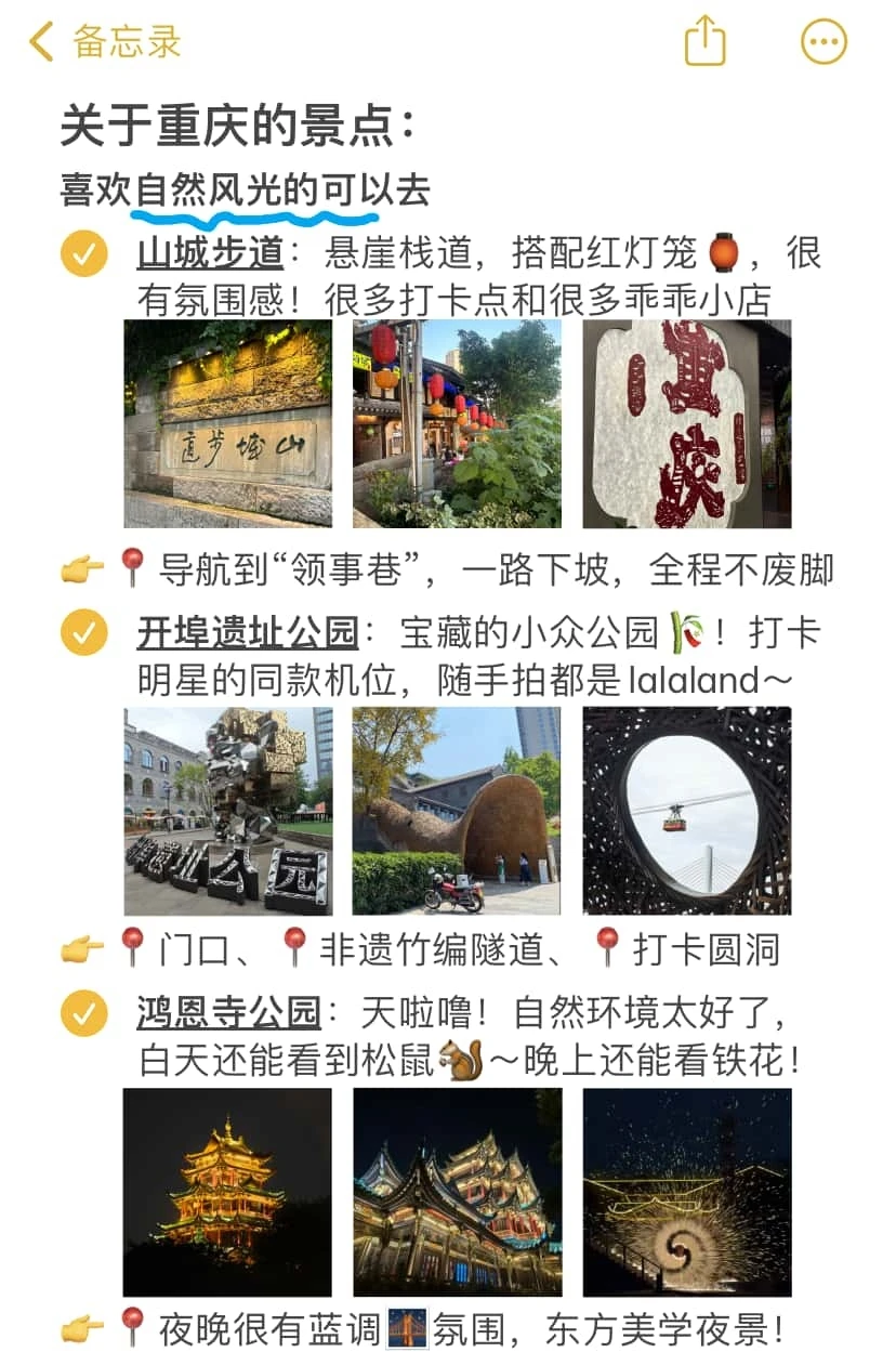 ✔️自然风景:山城步道、开埠遗址公园、鸿恩寺公园