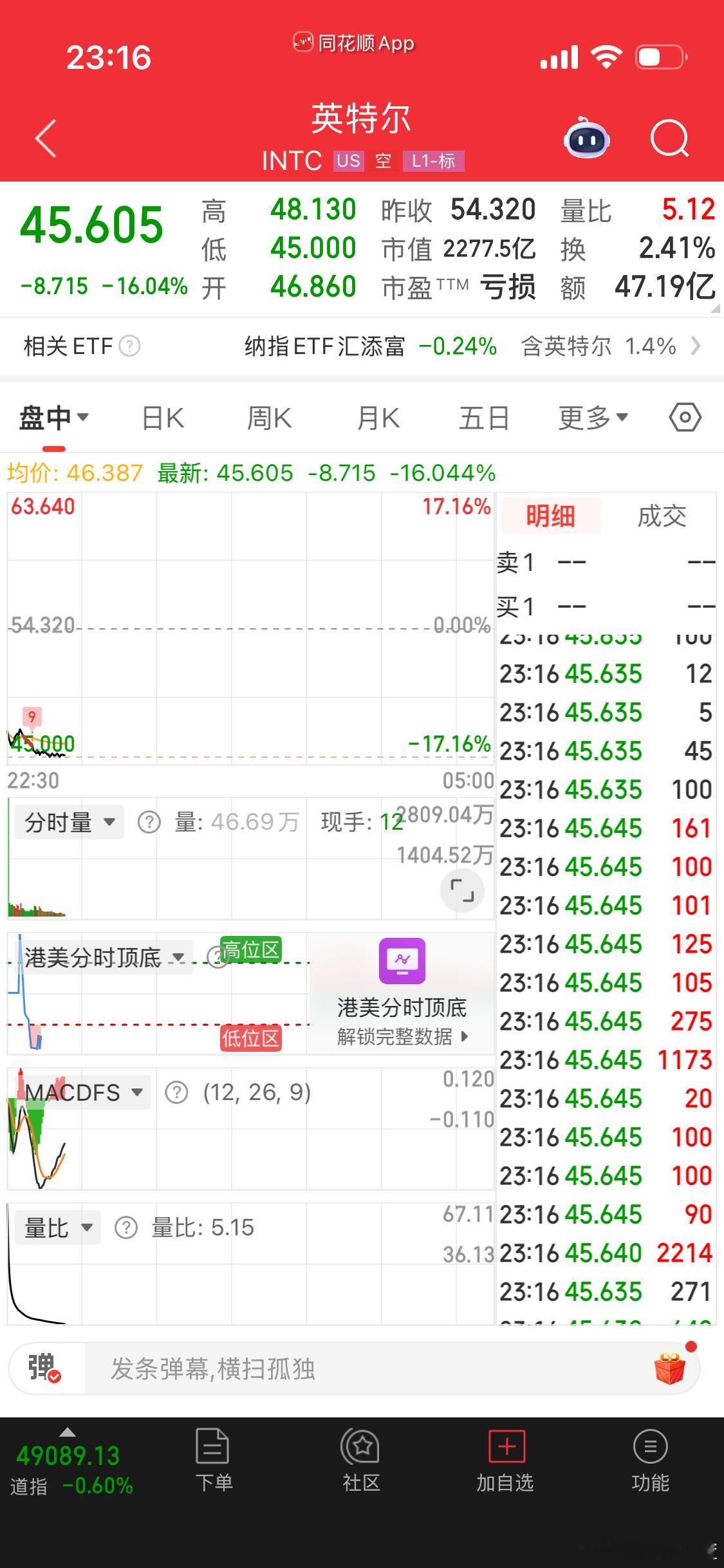 英特尔股价下跌16%创2024年8月以来最大跌幅。