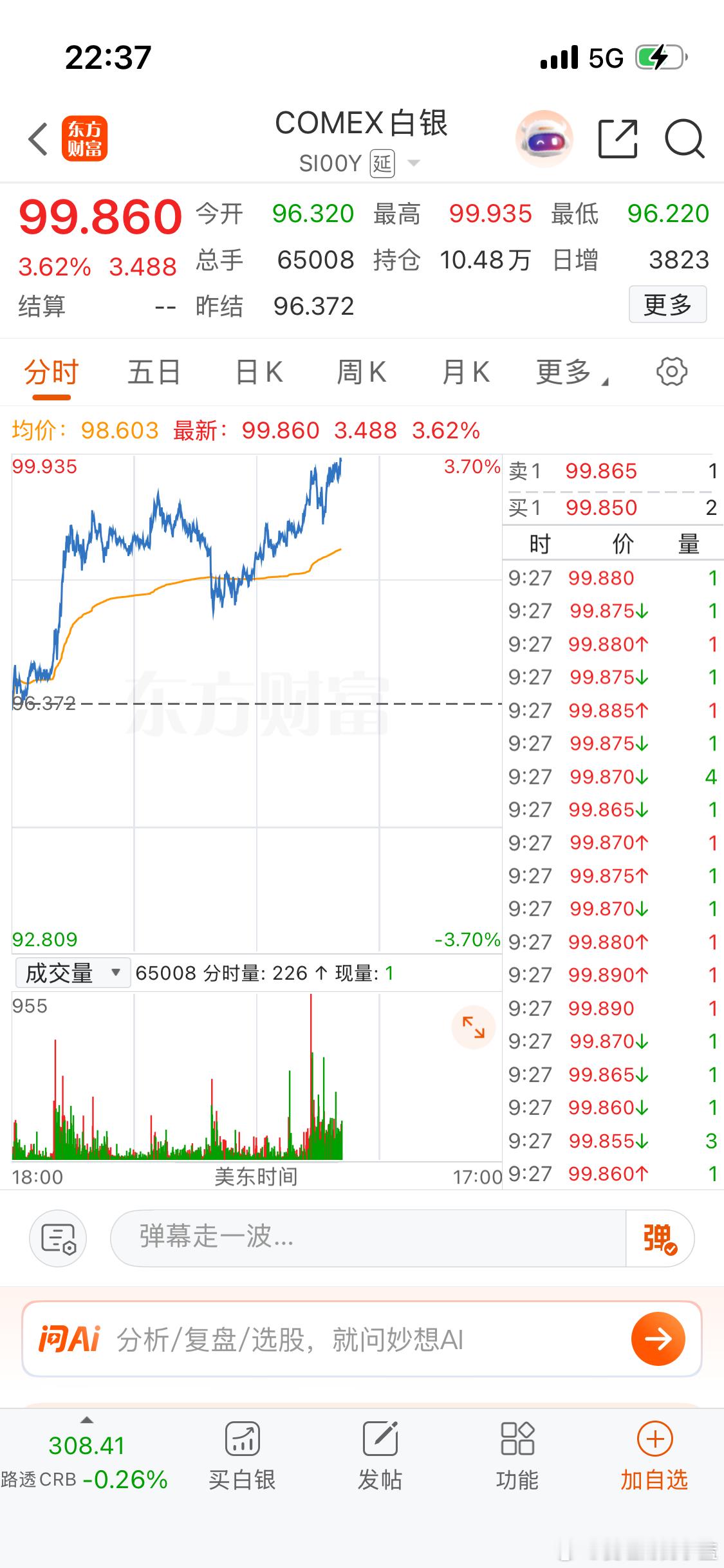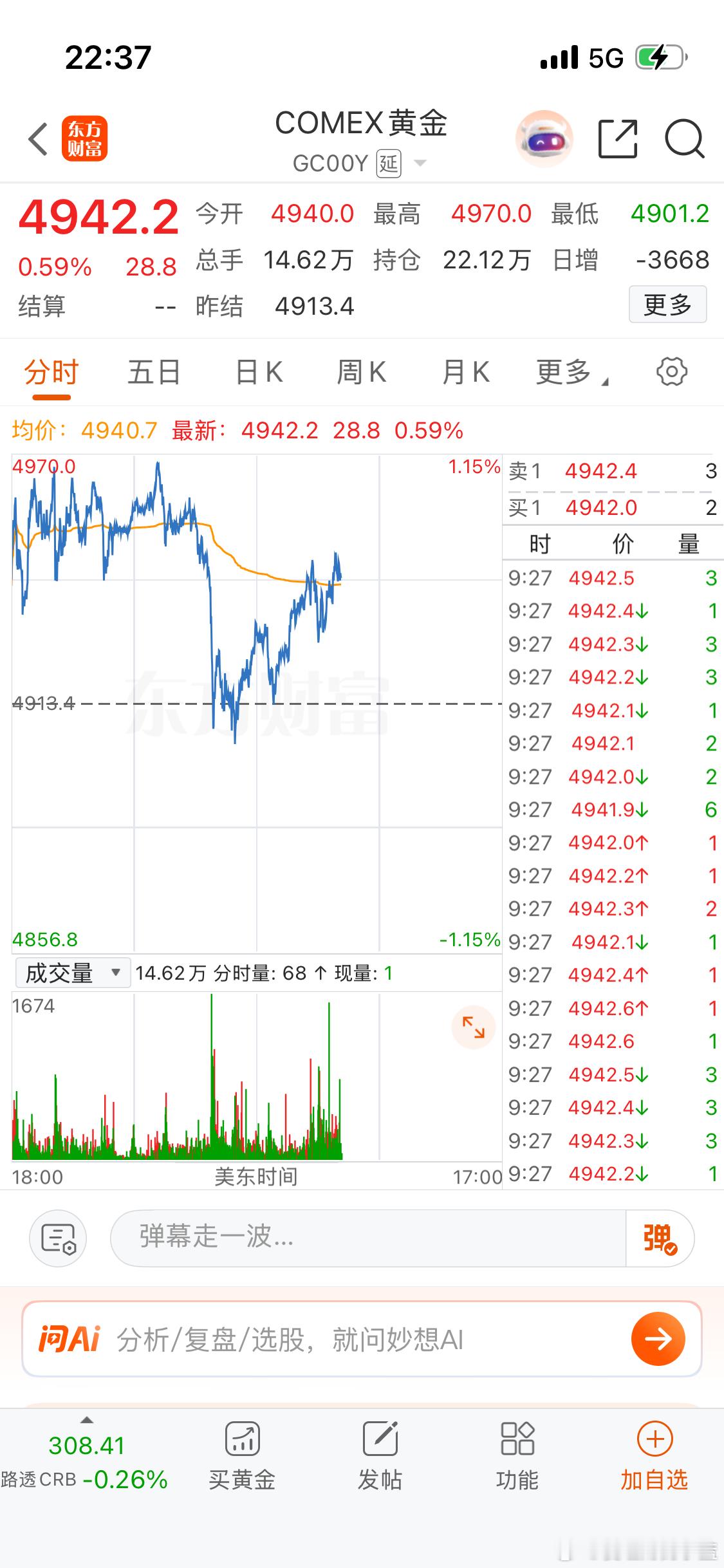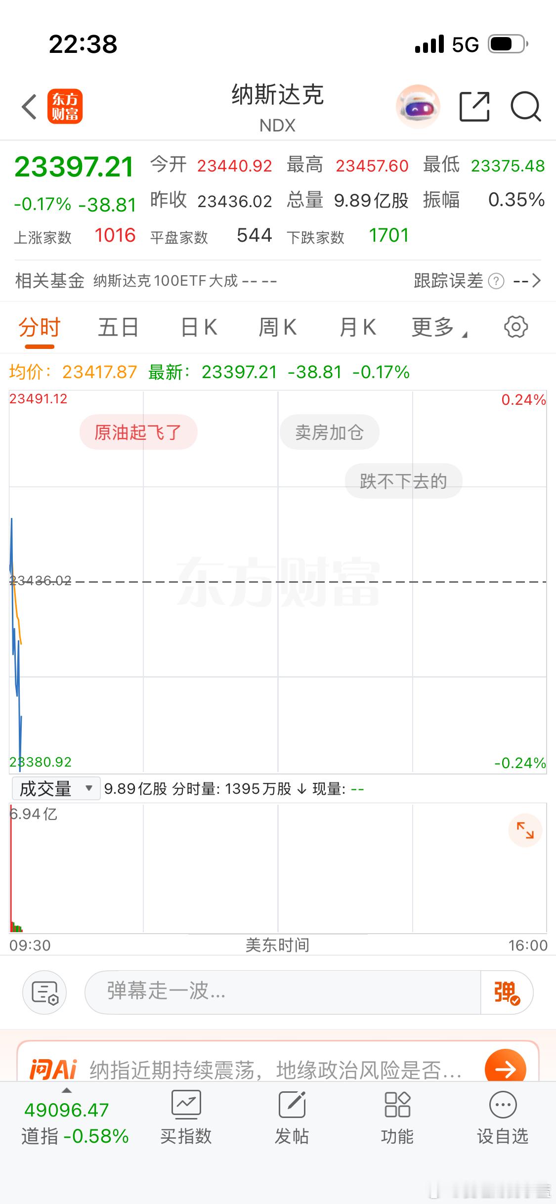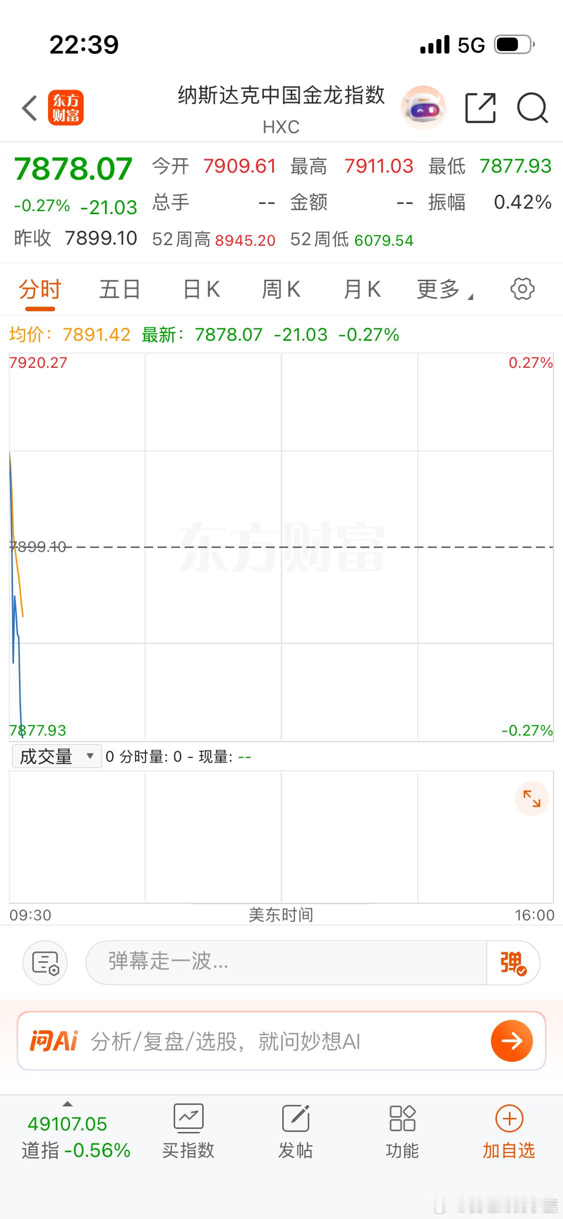 黄金高位突发跳水各位上市公司股东们晚上好。美股低开迅速跳水。纳斯达克 -0.17 纳斯达克100 -0.23生物科技 -0.04 金龙 -0.27黄金 +0.59 白银 +3.62原油 +2.86 油气 +2.31拜托大家不要只看不互动播报博主不好做。谢谢大家的支持。