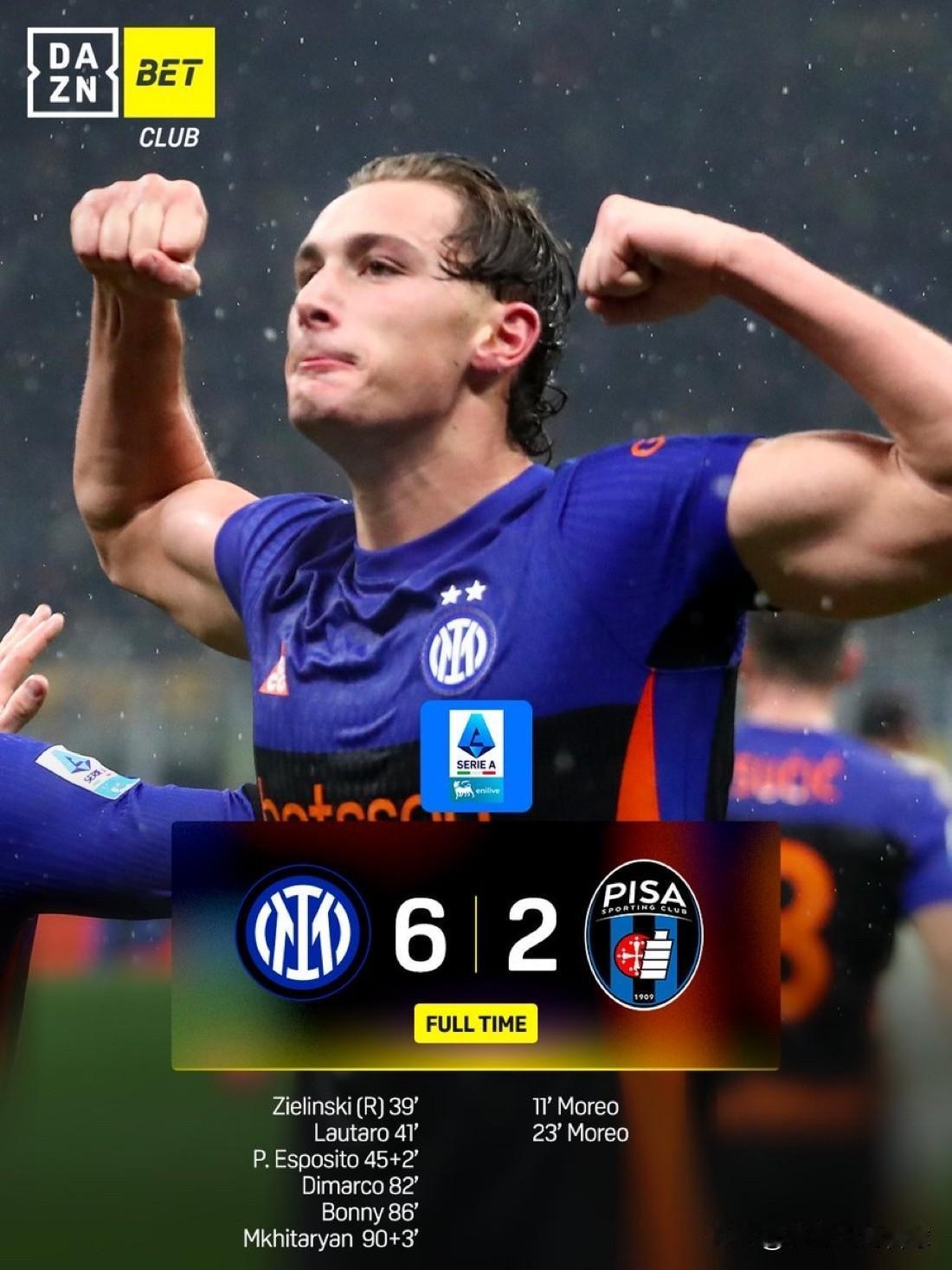 齐沃神级换人,国米让2追6大胜比萨,积分榜上领先米兰6分,那不勒斯9分。而本轮比赛米兰要客场挑战罗马,那不勒斯客场打尤文。国米开始坐山观虎斗,坐收渔利了。 比赛进行到23分钟,国米主场0:2落后比萨,齐沃对恩里克忍无可忍十分钟后直接用迪马克将其替换下场,这一换人可谓果断神奇,国米十分钟内连进三球实现反超,下半场大屠杀,再进三球。 但是门将索默的毫无作为以及右后卫无人可用的弱点也是暴露无遗,管理层趁冬窗该出手了。