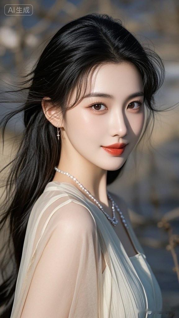 优雅黑裙,自信红唇,AI生成的完美女神