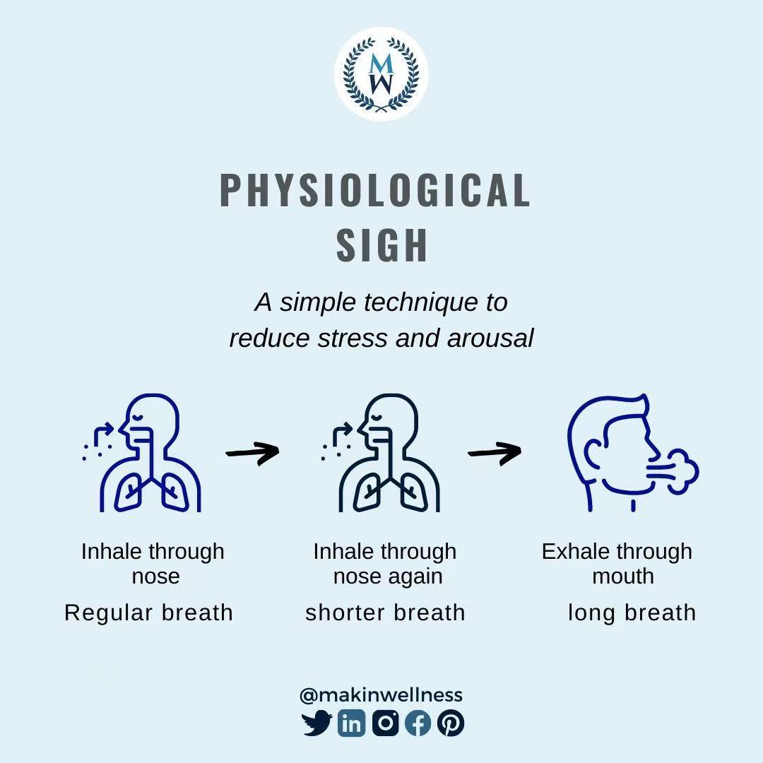 生理性叹息 虽然没有心情不好,但是就想深呼吸的叹一口气,然后感觉会舒服一些?今天我们来聊聊这个——生理性叹息生理性叹息(Physiological Sigh)是一种通过【两次短促吸气】 + 【一次延长呼气】调节呼吸的模式。很多人觉得叹一口气舒服,其实是有科学道理的,它的作用有: ——平衡血氧:焦虑时过度呼吸导致血氧失衡,长呼气可排出多余二氧化碳,恢复血液酸碱平衡。 ——激活副交感神经:延长呼气直接刺激迷走神经,抑制“战斗或逃跑”反应,降低心率与血压。 ——扩张肺泡:双吸气使塌陷的肺泡重新张开,提升血氧饱和度,防止肺部萎缩。 【标准操作步骤】1. 姿势:坐直或站立,放松肩颈。 2. 吸气阶段: ——用鼻子快速吸气 1秒 → 短暂停顿(0.5秒)→ 再快速吸气 1秒(总计吸入2倍空气量)3. 呼气阶段: ——用嘴缓慢呼气 ≥6秒,想象吹灭蜡烛的轻柔力度。 4. 循环次数: ——急性压力:连续3-5次循环(60秒内见效)。 ——日常维护:每日10次,或早晚各5分钟。朋友们可以来感受一下 锐博康复 焦虑