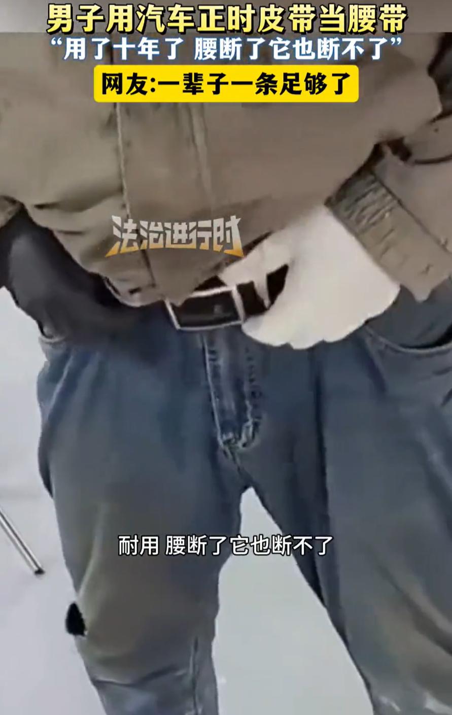 这也太有才了!山东,一男子去汽修厂修车,偶然看到维修工的腰带很特别,便上前询问他这是在哪买的腰带,没想到大哥却说:这是骑车正时皮带,用十几年了,腰断了它也断不了!网友:我咋没想到呢! 当时,男子等着取车,看见维修老师傅站起身,随手把一条黑乎乎的带子往腰上一勒。那带子看着不一般,厚实,边缘带着细密的齿,像某种工业零件。顾客忍不住凑近了问,师傅,你这腰带哪儿买的,挺特别啊 老师傅低头看了看,笑了:这哪是买的,这是汽车正时皮带,拆下来的旧件。用了十来年了,耐用,腰断了它都不带断的 有网友调侃说:好家伙,原来最好最耐用的离我这么近?!今天上班就把老板的A8正时皮带给他卸了 说起来,正时皮带本来就是发动机里顶关键的部件,得耐高温、抗拉伸,在高速运转下精准控制气门开合。一条能用十万公里以上。把它系在腰上,确实属于材料应用上的跨界混搭,带着一种车间里特有的、粗粝又聪明的幽默感 其实生活中这类小智慧不少。工地上的老师傅用水管和阀门做成了特别顺手的便携烟灰缸;农村大妈用废旧摩托车链条改成了结实耐用的拉门手。东西还是那个东西,换了个场景,就解决了另一个实际问题,都是劳动人民的智慧 当然,玩笑归玩笑,真要去拆车用正时皮带当腰带,还得考虑下舒适度和外观。但这件事有意思的点就在于,它让我们看到,专业领域的知识和技术,偶尔跳脱出原来的框架,可能会给日常生活带来意想不到的启发