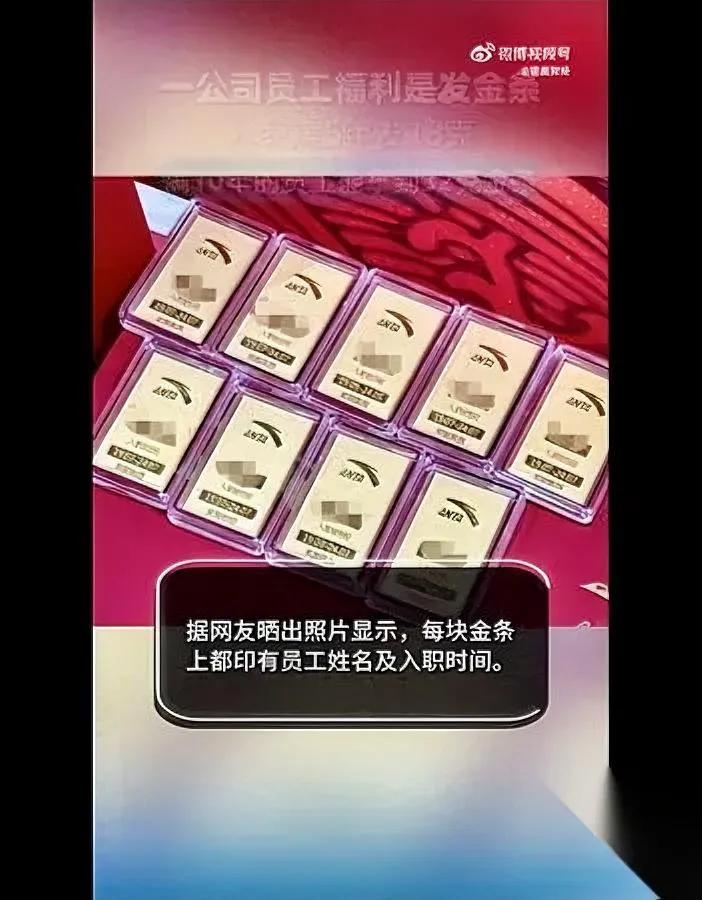 金价涨疯了 有人却躺着赚了 还是公司白给的? 最近国际金价冲破4900美元/盎司,国内金饰都卖到1548一克,不少人盯着金价算“买亏了多少”,安踏的老员工却晒出了不一样的“年终奖”——入职满5年,直接发18克刻着自己名字和入职时间的金条;满10年?32克安排上。 问起这份福利,员工说得特淡定:“正常啊,我们都知道满5年就有。”更狠的是,这福利安踏已经连续发了20年,砸进去超亿元,2025年还有1600多个员工能拿到。 别的公司搞福利爱拼“创意”,安踏偏拼“稳”——不玩花架子,把“感谢长期陪伴”换成最实在的“硬通货”。金价涨得越凶,这根金条越像颗“定心丸”:你陪公司走得久,公司就给你留份“看得见的安全感”。 话说回来,你见过最实在的公司福利是啥?是这种“能保值的安全感”,还是别的暖心小细节?评论区聊聊,说不定能让老板们抄抄作业~