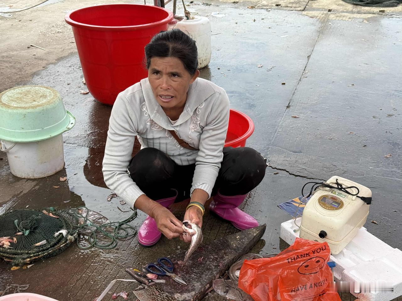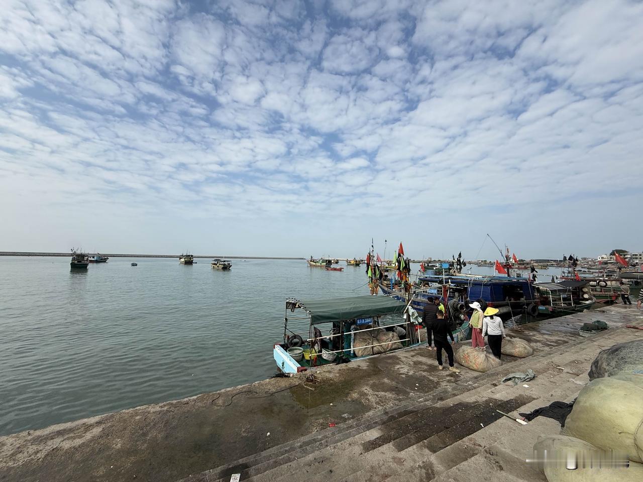 海南岛西海岸,一个普通渔港,买几斤虾,回去煮了吃。