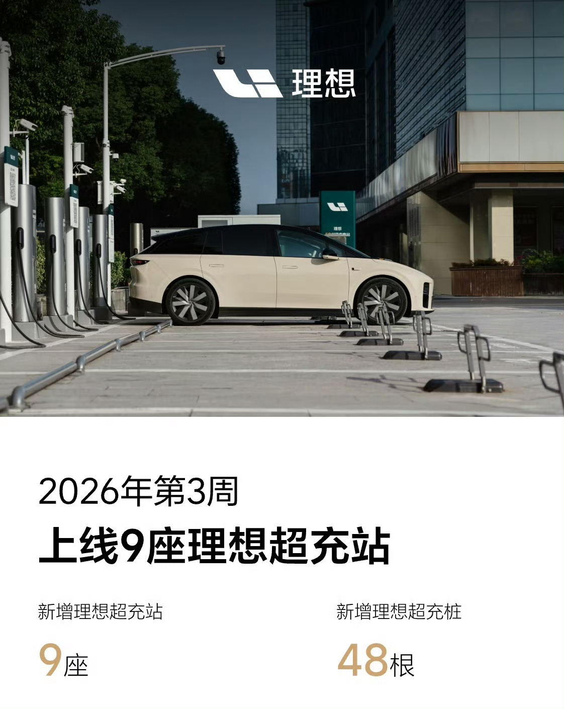理想超充站,截至2026年1月18日,数量达3940座、超充桩21,823根,超充网络覆盖31省、286城。稳定发展。持续发展,看好2026年的发展方向。