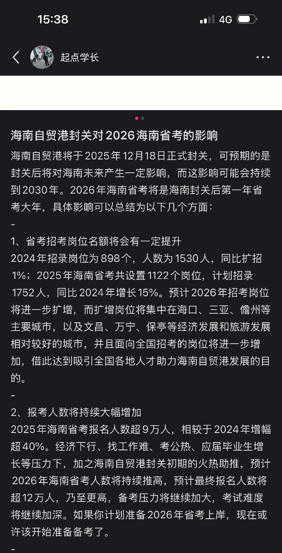 2026年海南省考报名人数突破12万。 截止2026年1月23日15点整,海南省考报名人数已超12万人,同比增长超3万人,但招考岗位人数却比去年少了200多人。 正如我年初所预计的一样,海南自贸港加持下,今年省考报名人数再次突破新高,尤其正逢双数年,今年可能是行测历史上最难的一年,申论预计仍旧保持去年难度水平。所以,大家要好好加油备考了!