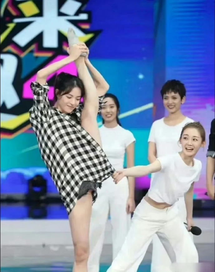 当时看到芳华海报,感觉钟楚曦是拿着别人的腿,直到她在节目里展示一字马…