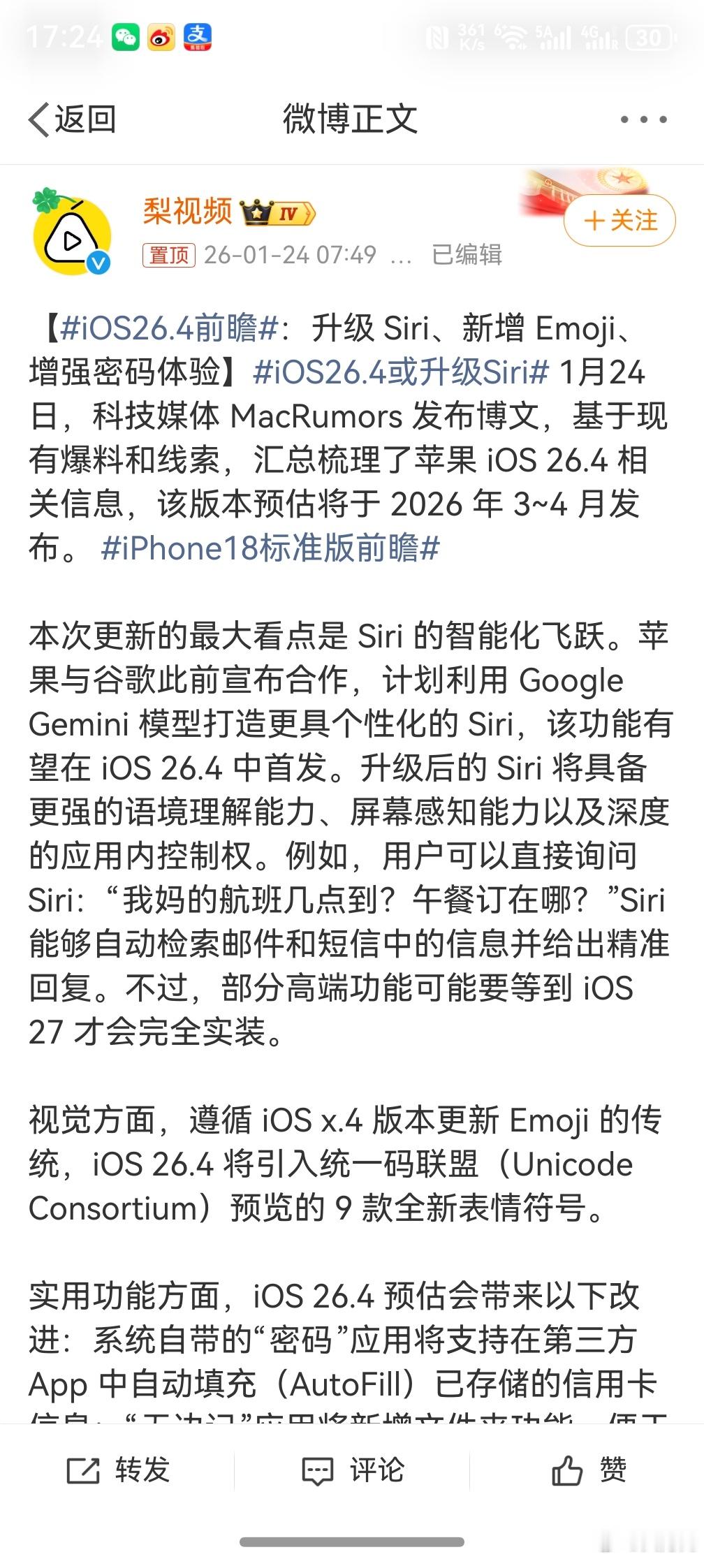 iOS26.4前瞻 ,我只求苹果用点心做调优吧,以前的IOS是稳定的代名词,现在