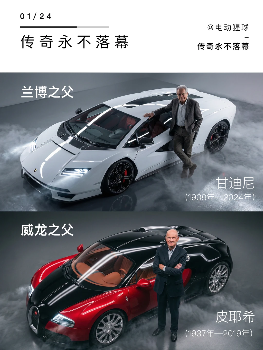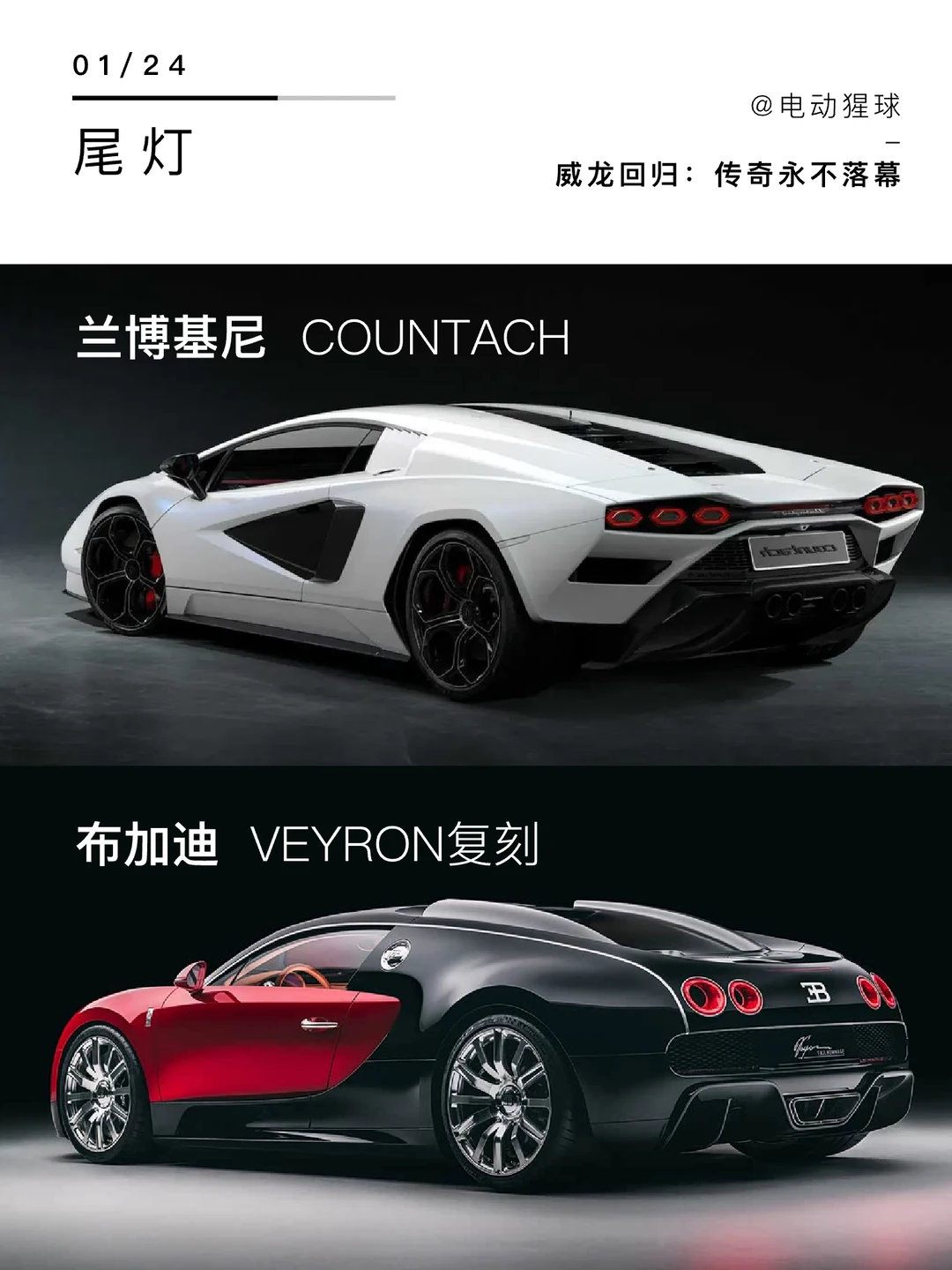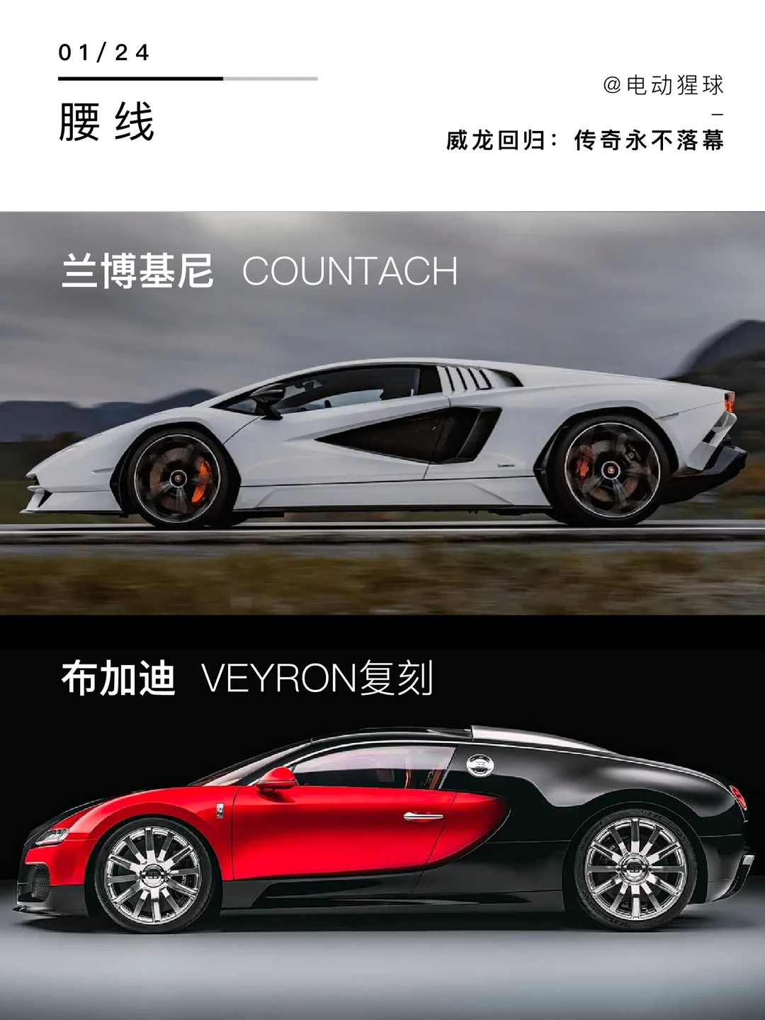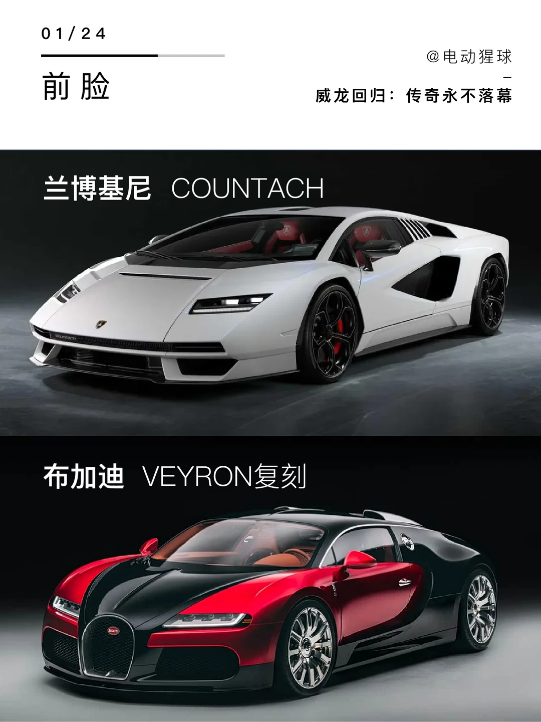 布加迪将威龙重制,致敬了前大众CEO皮耶希,也是保时捷创始人的外孙,在20年前主导了威龙的开发,当你对现代抄袭感到失望的时候,不妨看看这两辆车,另外一台Countach同样也是重制版,原型出自传奇设计师甘迪尼,打造了兰博基尼沿用至今的超前设计,两位大师已离世,但属于他们的汽车传奇永不落幕