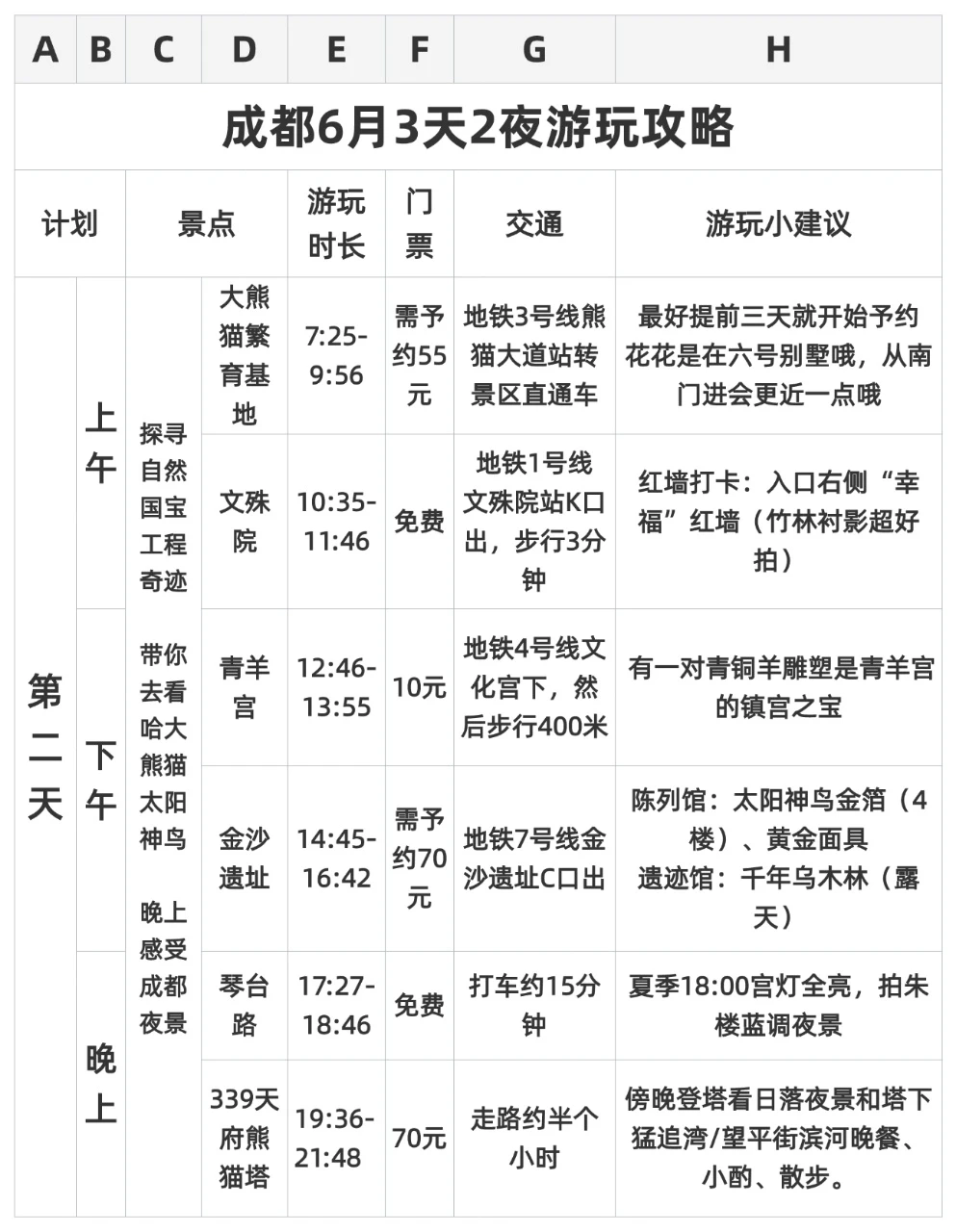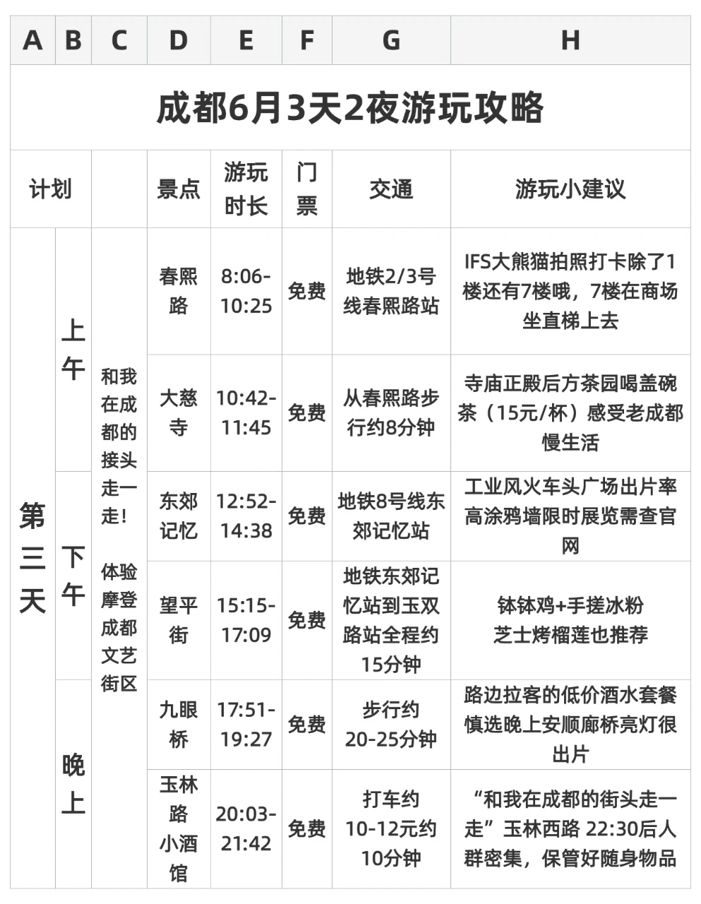 📝成都玩了3天,闺蜜做的攻略👭真是绝了,详细清晰明了,我真是一点心不用操✌