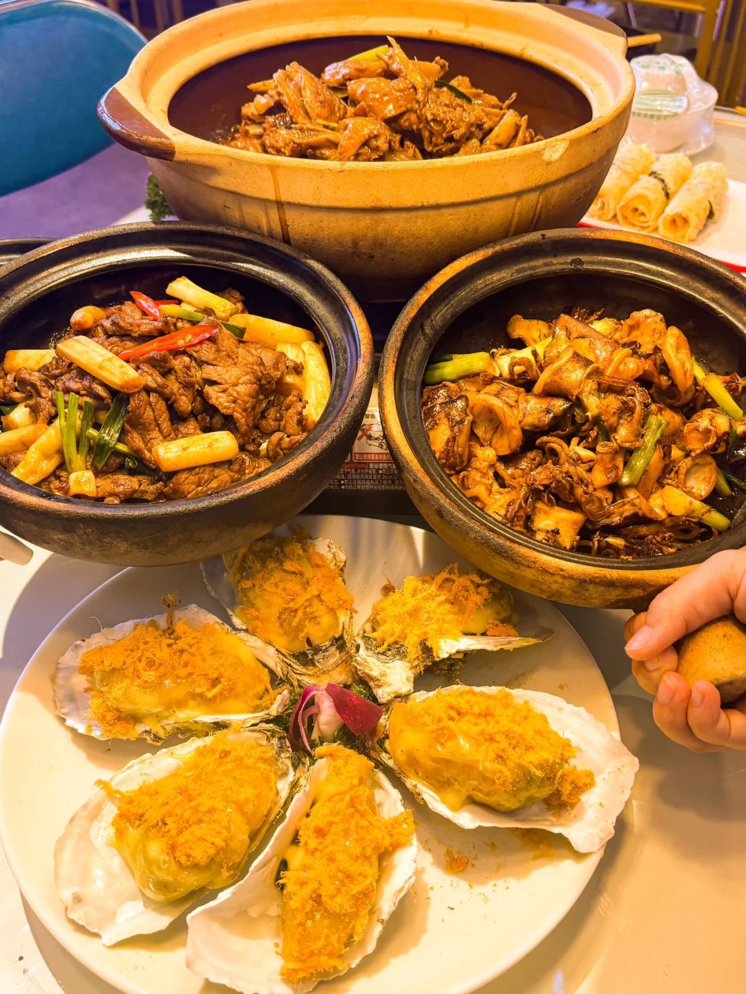 来北海千万别错过这家宝藏店!文火慢炖的香茅鸭真的香迷糊了,肉质炖得软烂脱骨,吸满汤汁,拌上一碗越南泡面直接香到跺脚! 他家现焗的硬菜也毫不逊色,牛肉煲、芝士虾、鱿鱼煲,锅气十足,每道菜都超下饭! 还有还有肉松大蚝🦪,外面裹着肉松和沙拉酱,里面是炸过的生蚝,一口吃下去口感很丰富😋 📍桂禧小馆·广西菜