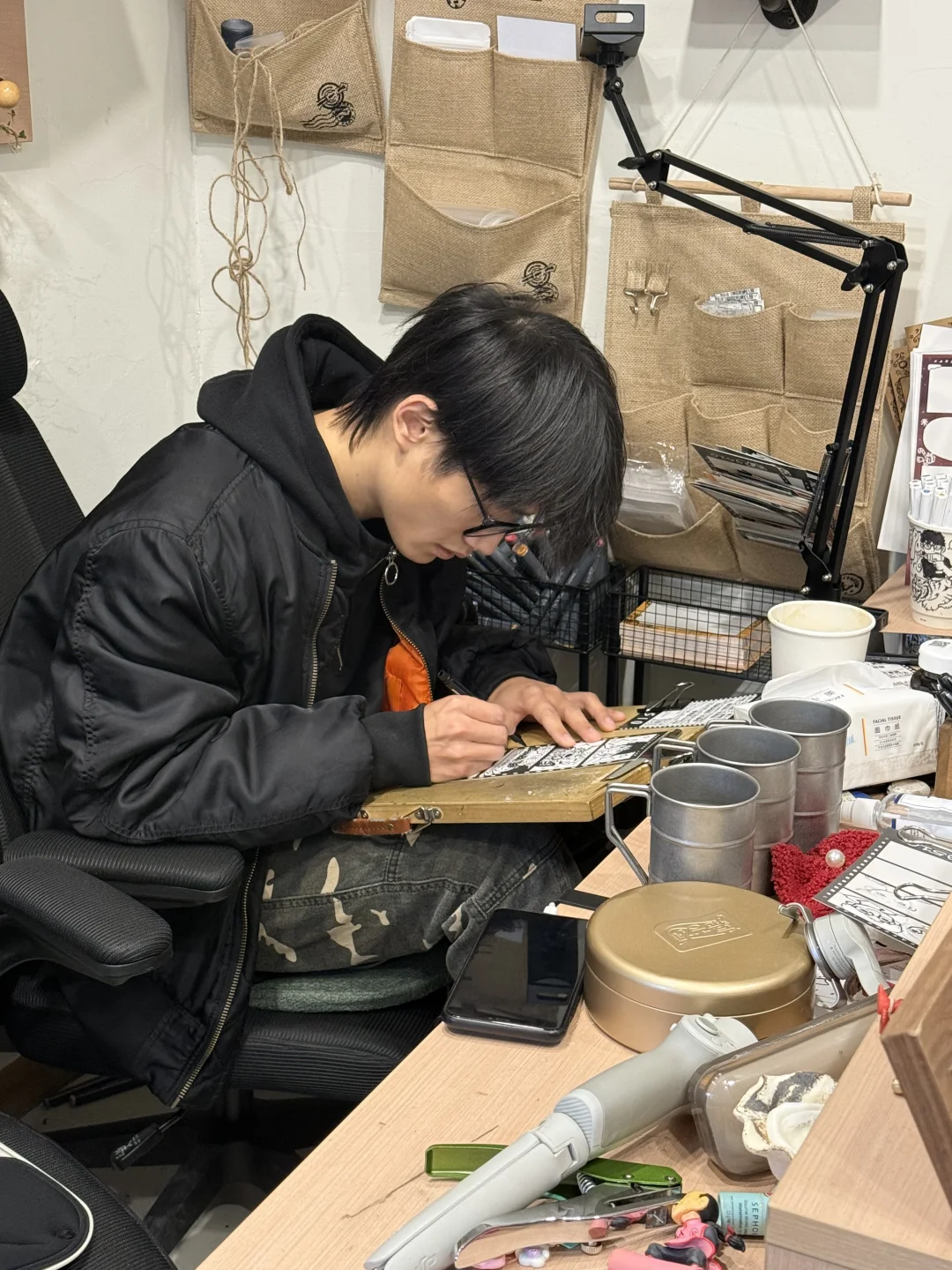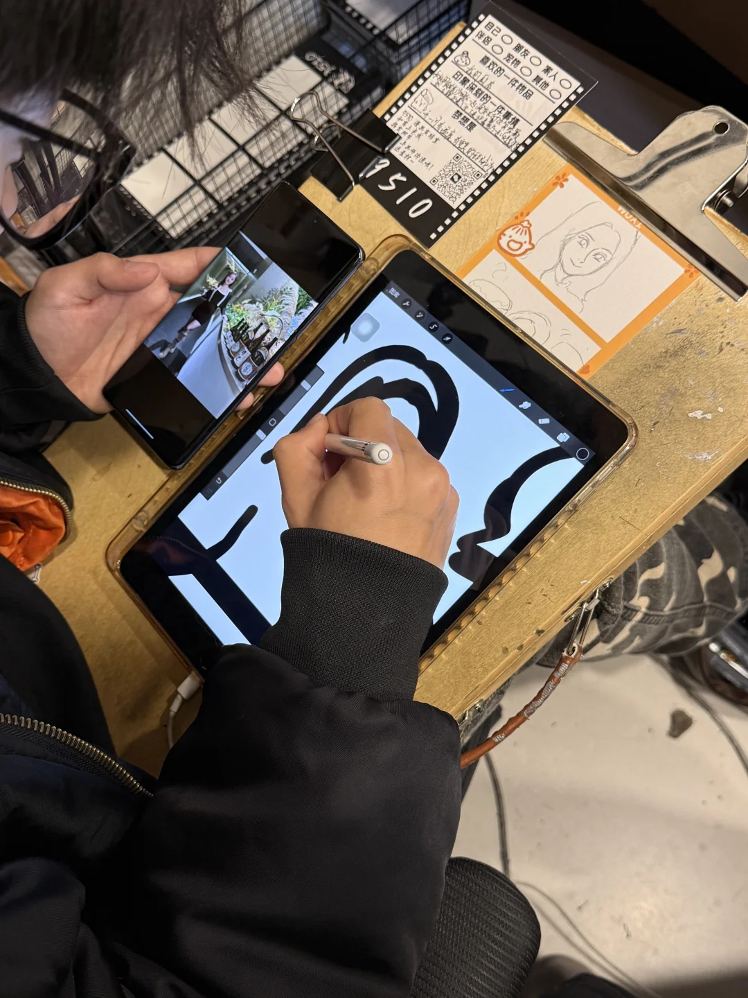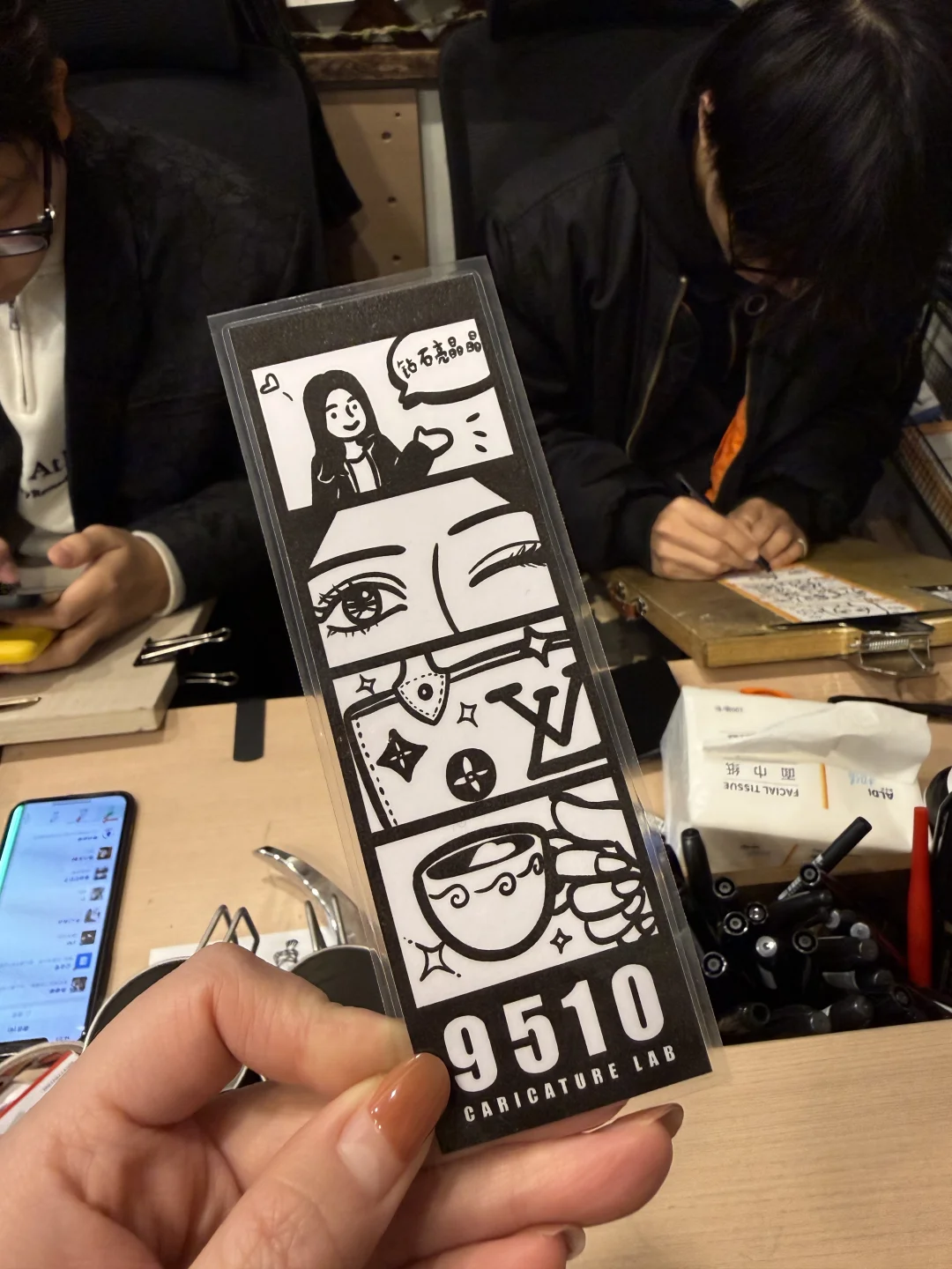 后西溪的这间漫画馆好韩呀 店内墙上是满满手绘风🎨 先填问卷告诉画师你的小故事 ⌚️半小时就能拿到超萌的Q版画 画师会按一下铃然后在下面柜子打开 这个过程真是令人惊喜😎😎😎 画风可爱到完全就是我想要的样子✨ 瞬间被治愈~🥰