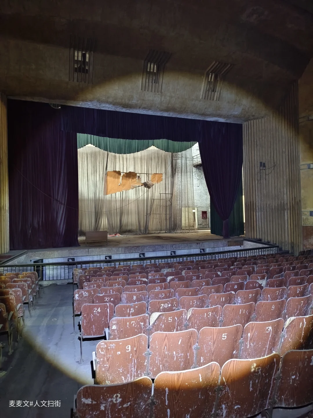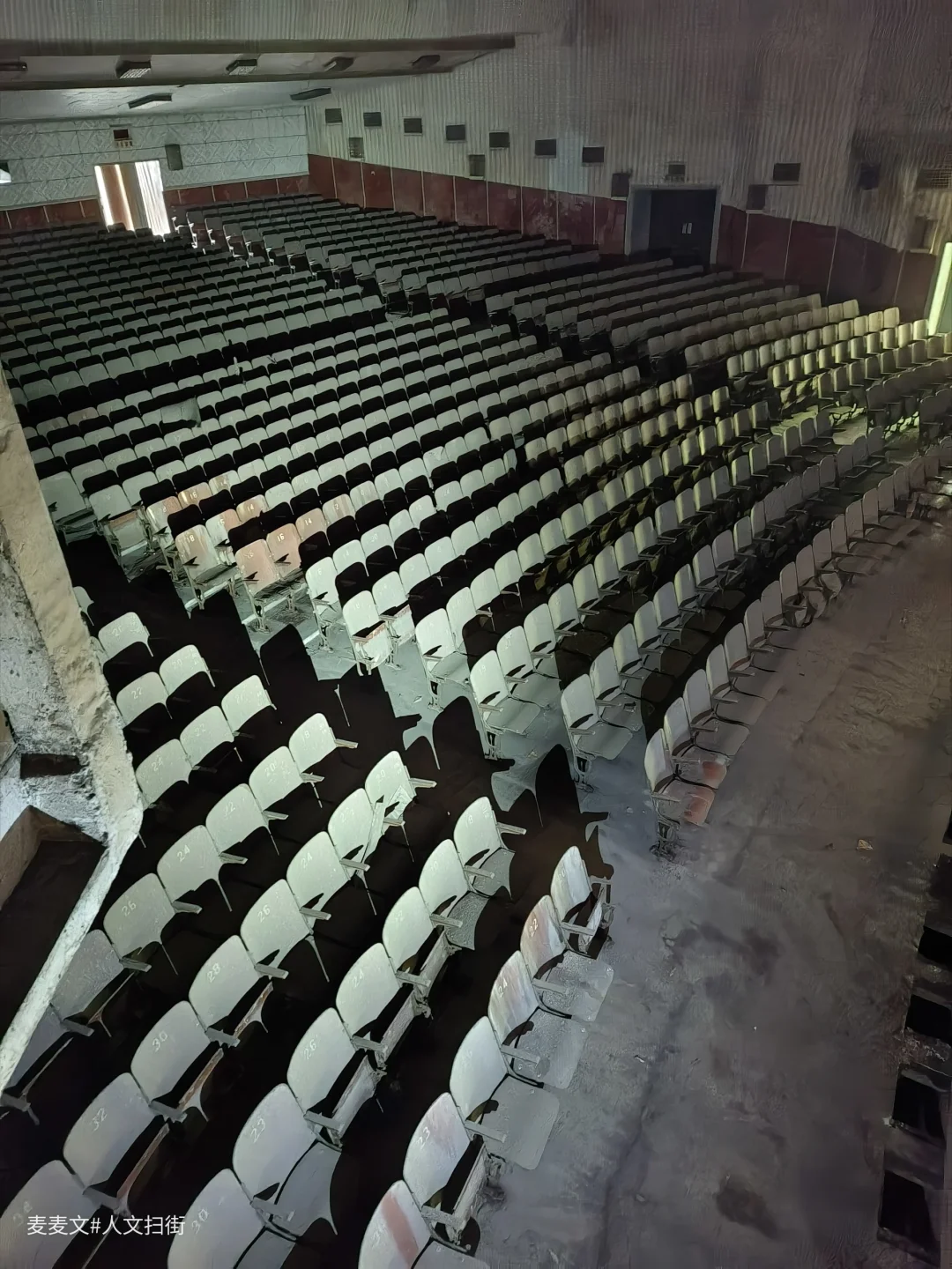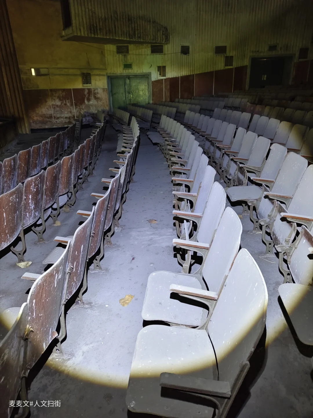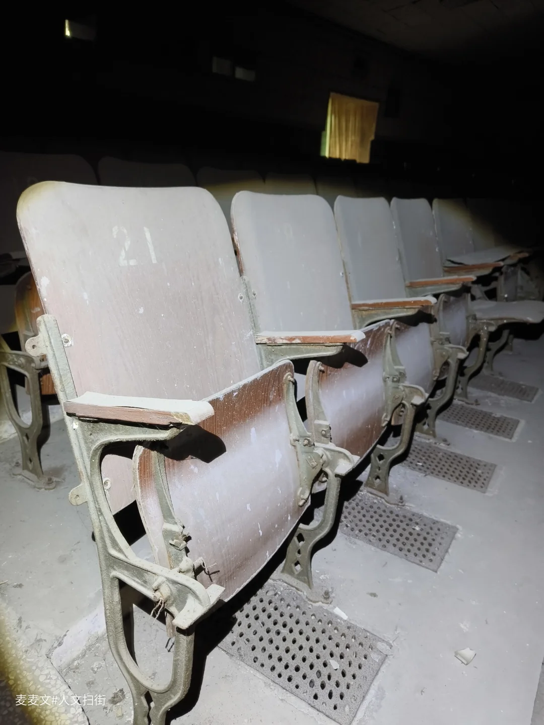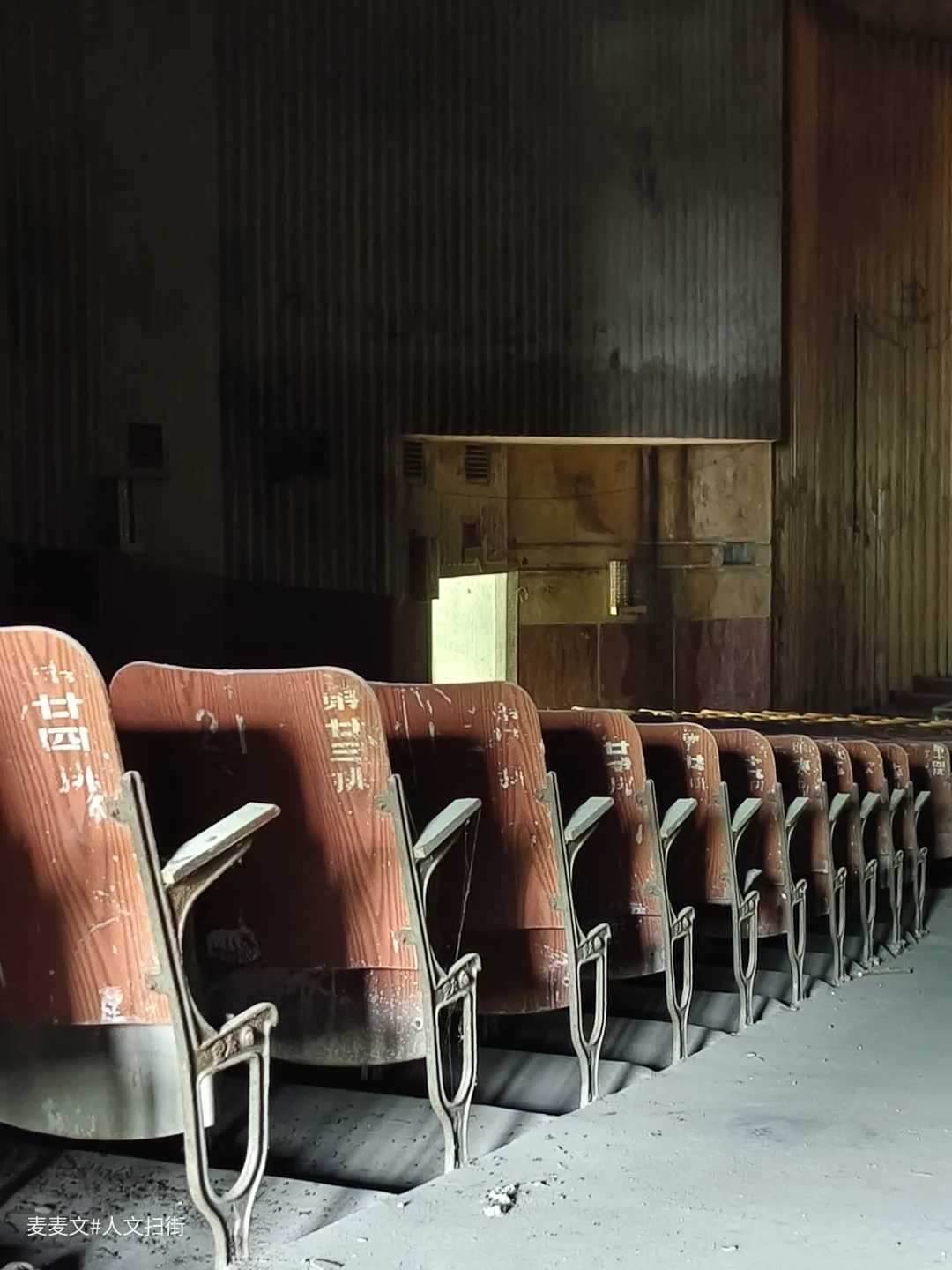 位于四川广安地区的一座老电影院历经风霜,仍静静地矗立在原地。灰白的墙皮有些剥落,显出一种古朴感。观影区的座椅一排排整整齐齐地站着,棕漆已有些斑驳,却仍挺直腰杆,不曾歪斜半分。灰尘扑扑的地板上偶有几点污渍,像是岁月不经意留下的签名。放映机早已停转消失,但银幕依旧高悬,仿佛还在等待着光影的降临。