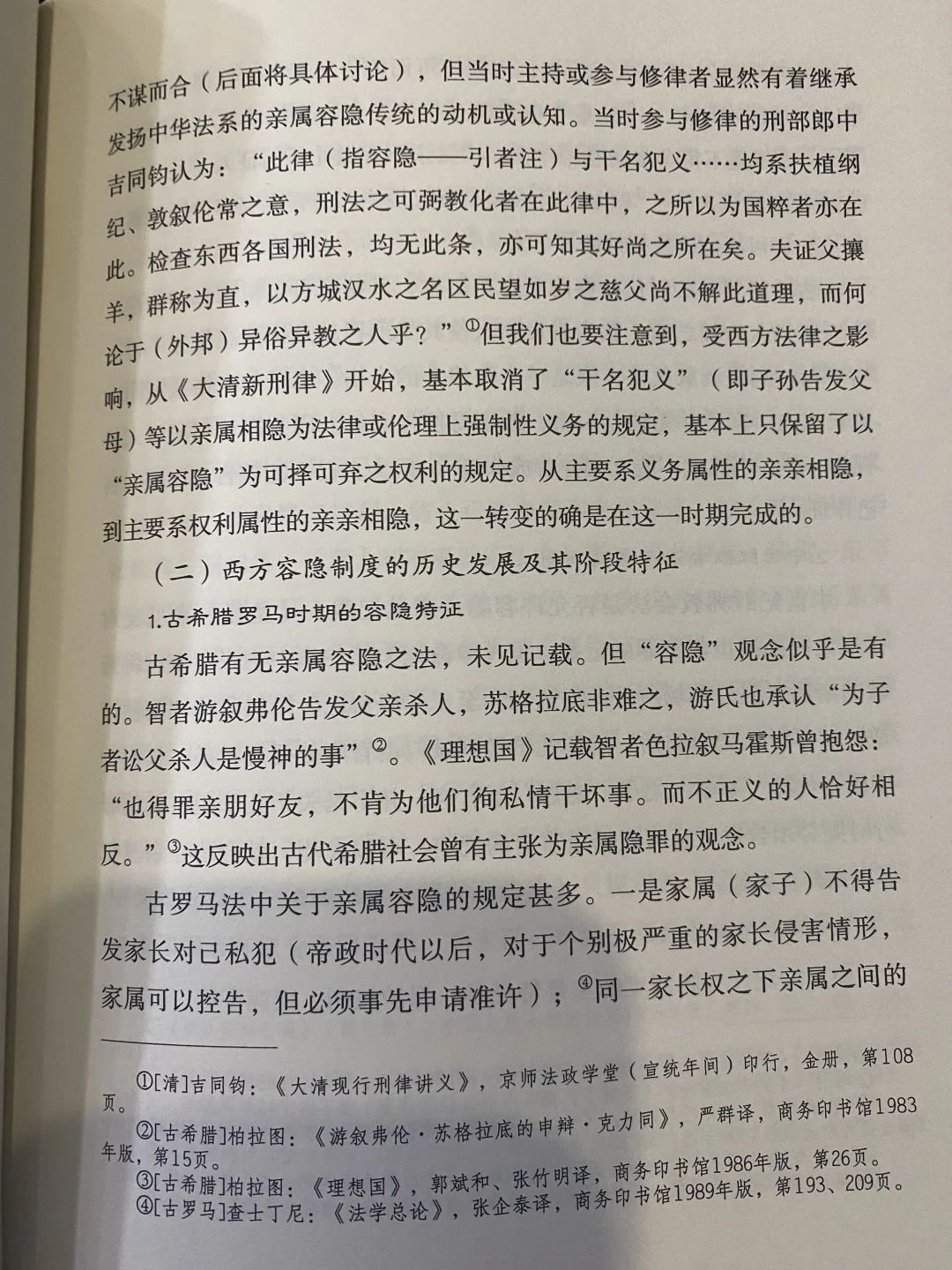 书中举例了很多中西法律上的相关问题,比较喜欢“容隐制”的部分,这种“包庇之罪”在世界范围都是一样的