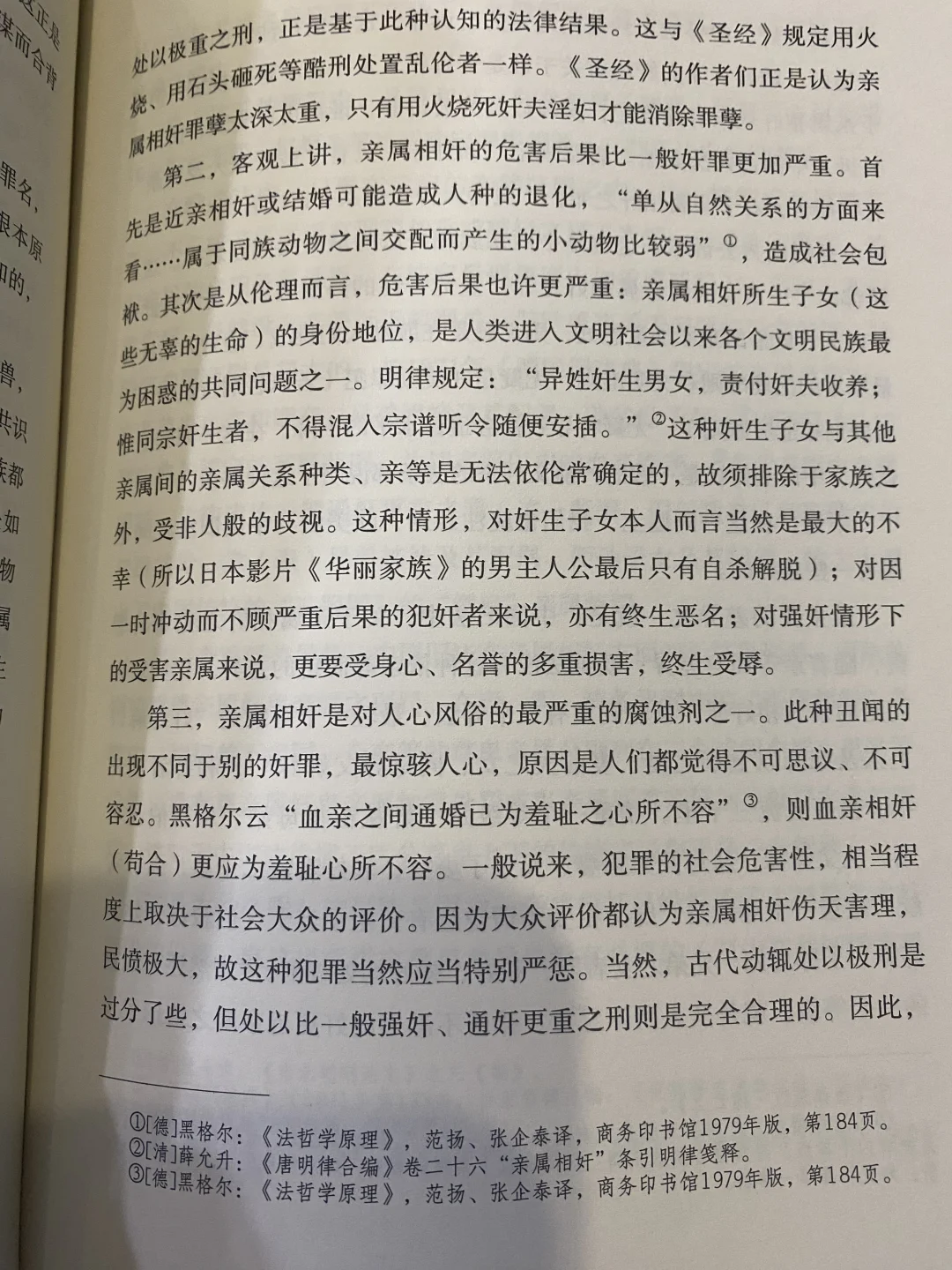 后面还有介绍关于亲人之间犯罪的问题、对于伦理精神的解析、性 犯 罪 问题、“道 德”问题,很多内容都是相通的,只能说一句民族的就是世界的?