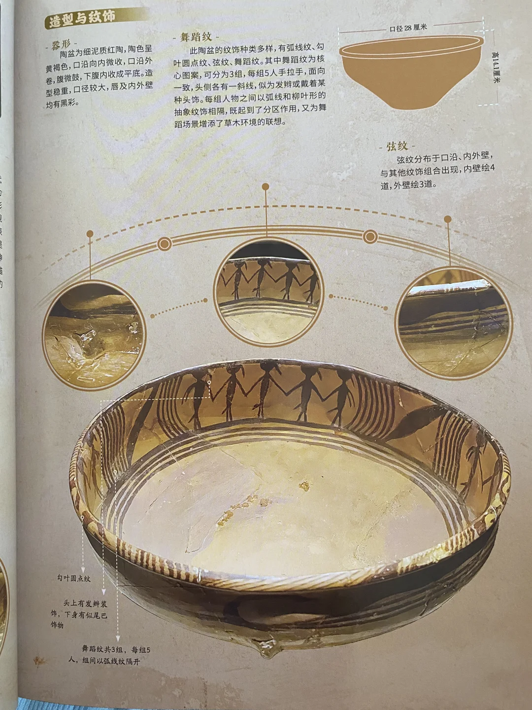 意义:祭祀礼器,画面很有可能是描述了一场真实的祭祀舞蹈,舞者身下的斜线被解释为“尾饰”,暗示着先民在模仿某种图腾动物进行舞蹈,通过还行为获取神 力或求繁衍生息。反映了原始图腾崇拜和增强部落凝聚力的社会需求(族群认同)