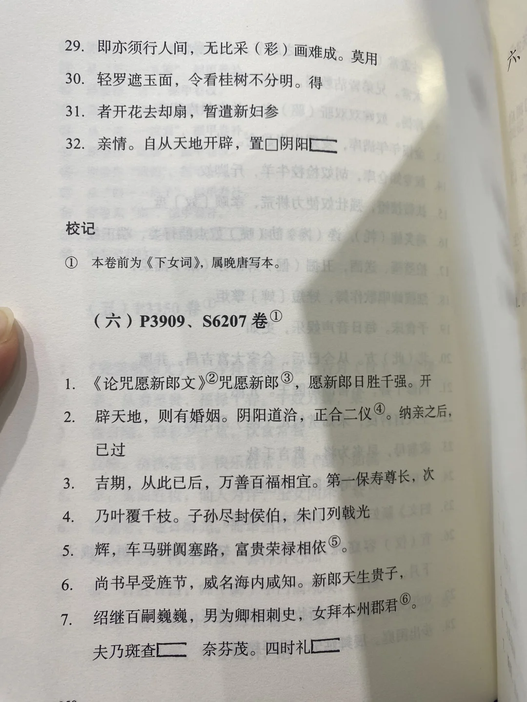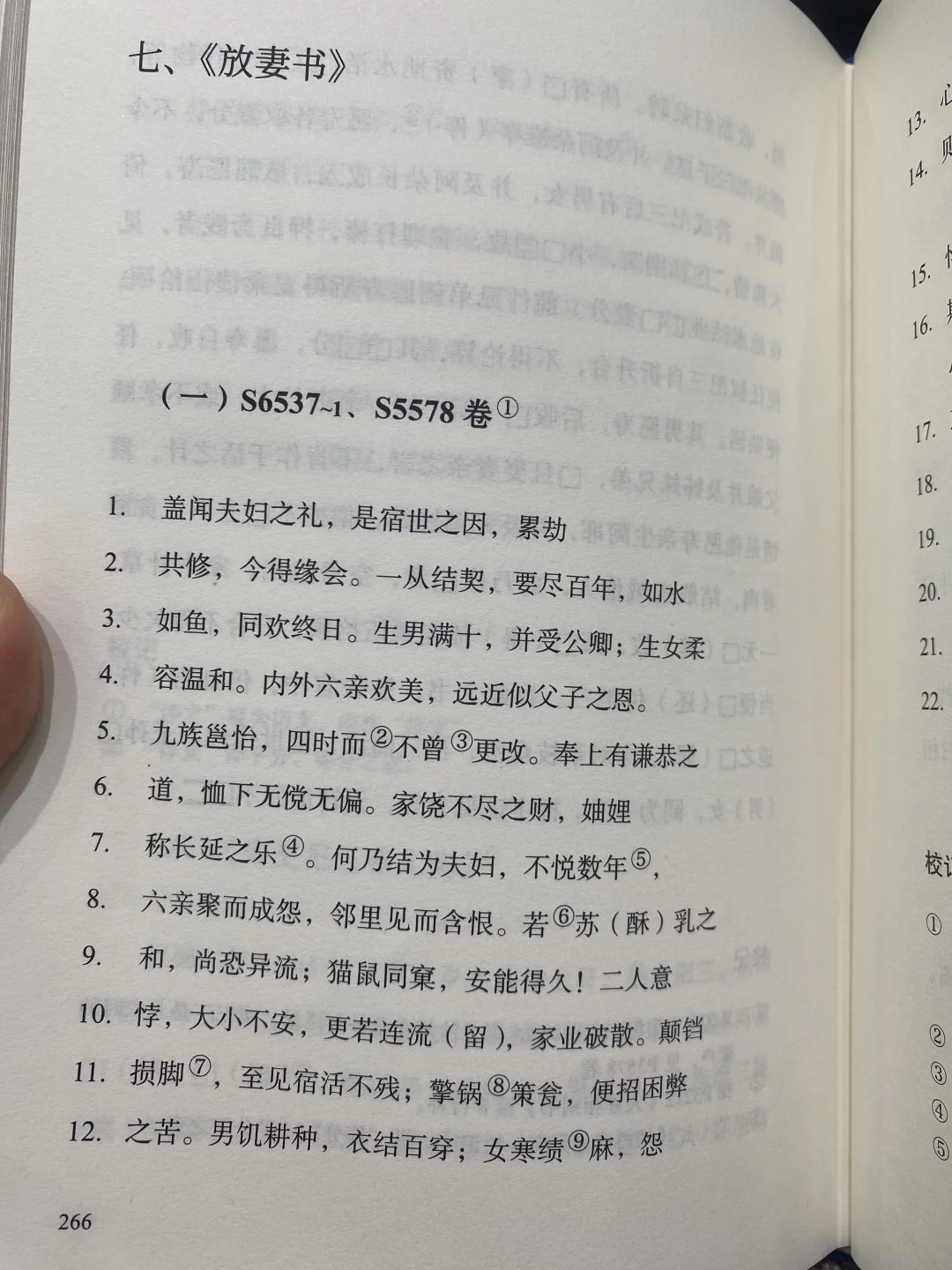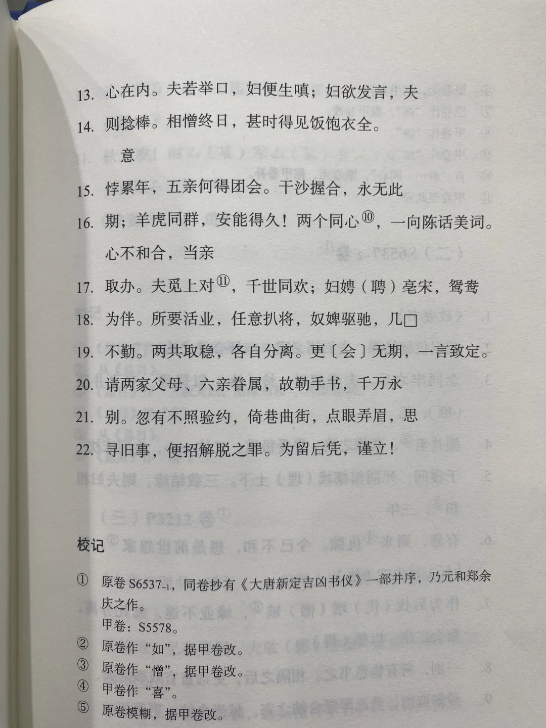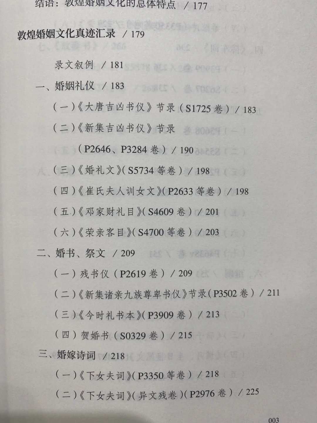 读完本书发现,敦煌的婚姻文化有以下特点①是对六礼的沿袭与变异 ②经过民族文化的融合 ③受佛教的思想影响,尤其是放生奠雁、《咒愿文》提出的“同修十善”等内容