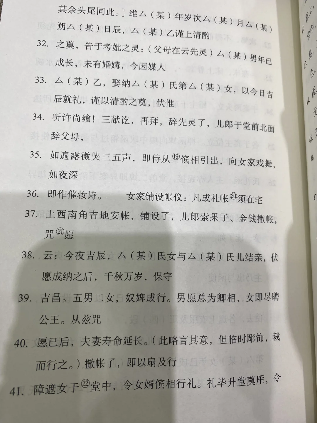 饮合卺酒后:①去扇②去襆头③去帽惑④除花⑤脱衣⑥梳头合髻⑦系指头