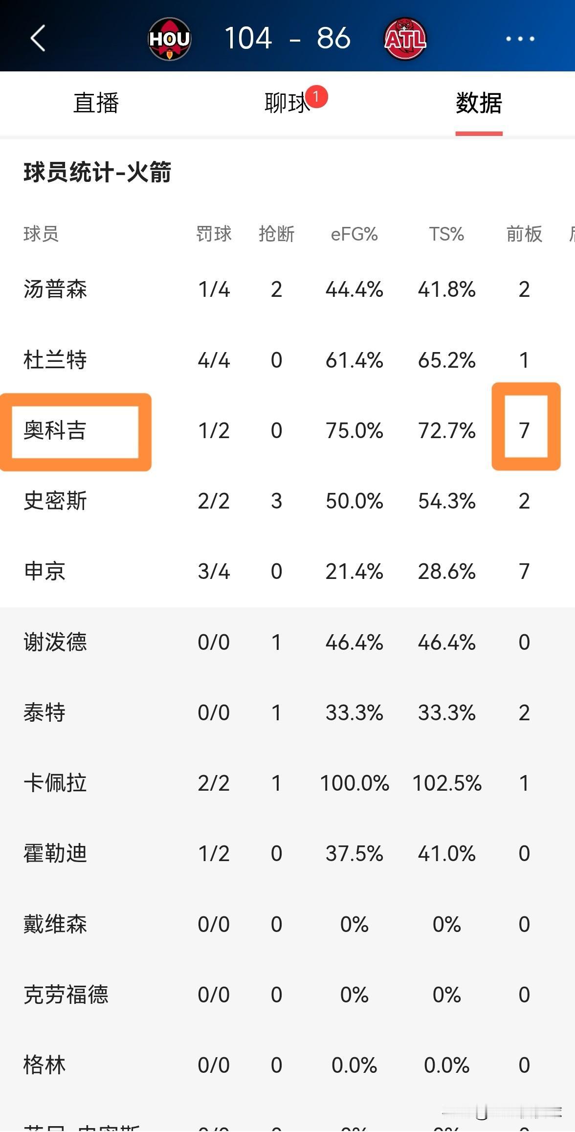火箭主帅乌度卡对爱将奥科吉赞不绝口!在今天火箭客场以104:86大胜老鹰的赛后采访中,乌度卡教练怒赞奥科吉在前场篮板方面的表现。 当聊到奥科吉本场比赛拼抢到全队最多的7个前场篮板时,乌度卡教练说道:“这对于球队而言真是太重要了,在全队抢到22个进攻篮板的情况下,一名后卫/侧翼球员可以抢到其中的7个,这充分展现了他的能量。” 正如乌度卡教练说的那样,本场比赛奥科吉在攻防两端都充满了能量,奥科吉的表现让人感到非常惊叹。