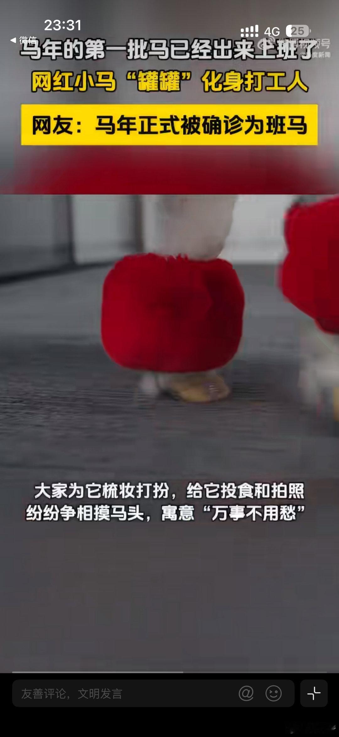 马年的第一批马已经出来上班了打工人的马年人设 马年伊始,网红小马“罐罐”现身办公楼成顶流。大家为它梳妆、投食、拍照,摸马头求“万事不愁”,沾马气盼多挣“马力”,大家马年好呀