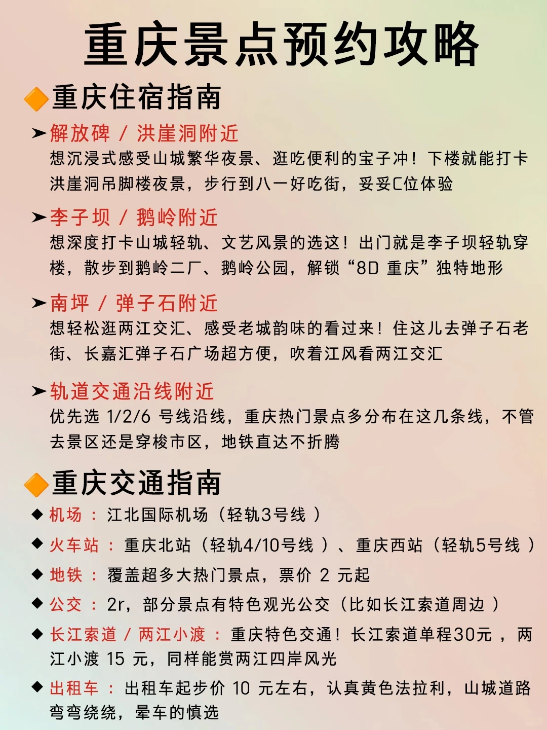 我不允许还有人不知道重庆景点咋予约!超详细干货整理👋,近期打算来重庆打卡洪崖洞、轻轨穿楼的,建议收藏~