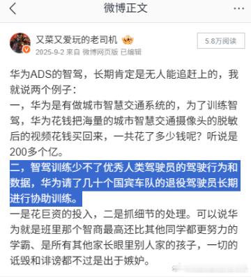 四个月前我说的,华为请了几十个国宾车队的退役驾驶员协助训练。现在大家在4.1上彻