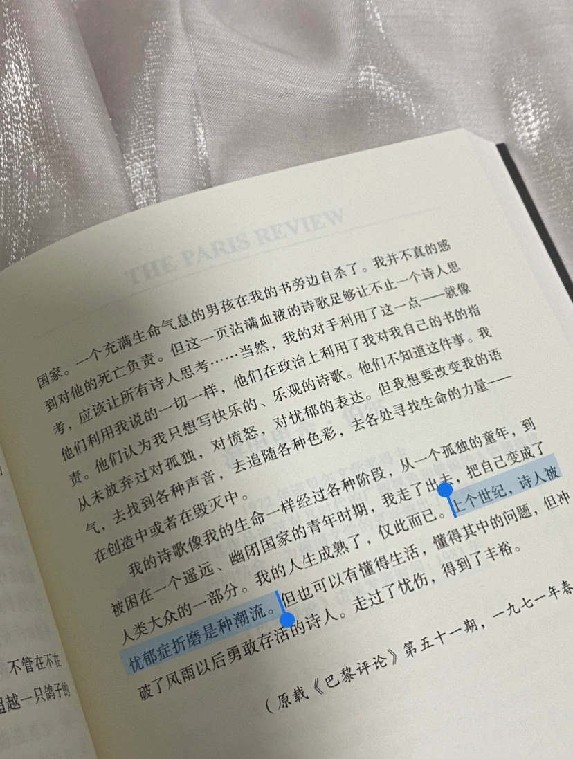 上个世纪,诗人被忧郁症折磨是种潮流。但也可以有僅得生活,懂得其中的问题,但冲破了风雨以后勇敢存活的诗人。走过了忧伤,得到了丰裕