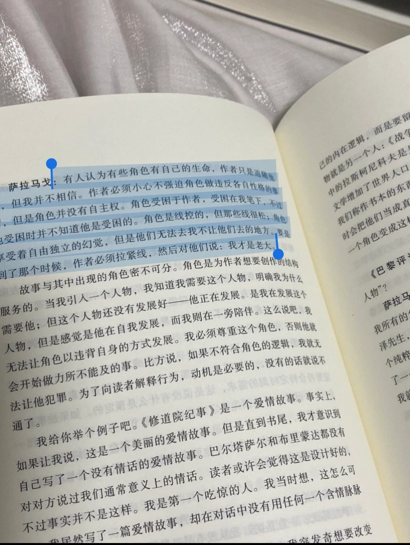 角色受困于作者,受困在我笔下,不过他受困时并不知道他是受困的。角色是线控的,但那些线很松;角色享受着自由独立的幻觉,但是他们无法去我不让他们去的地方