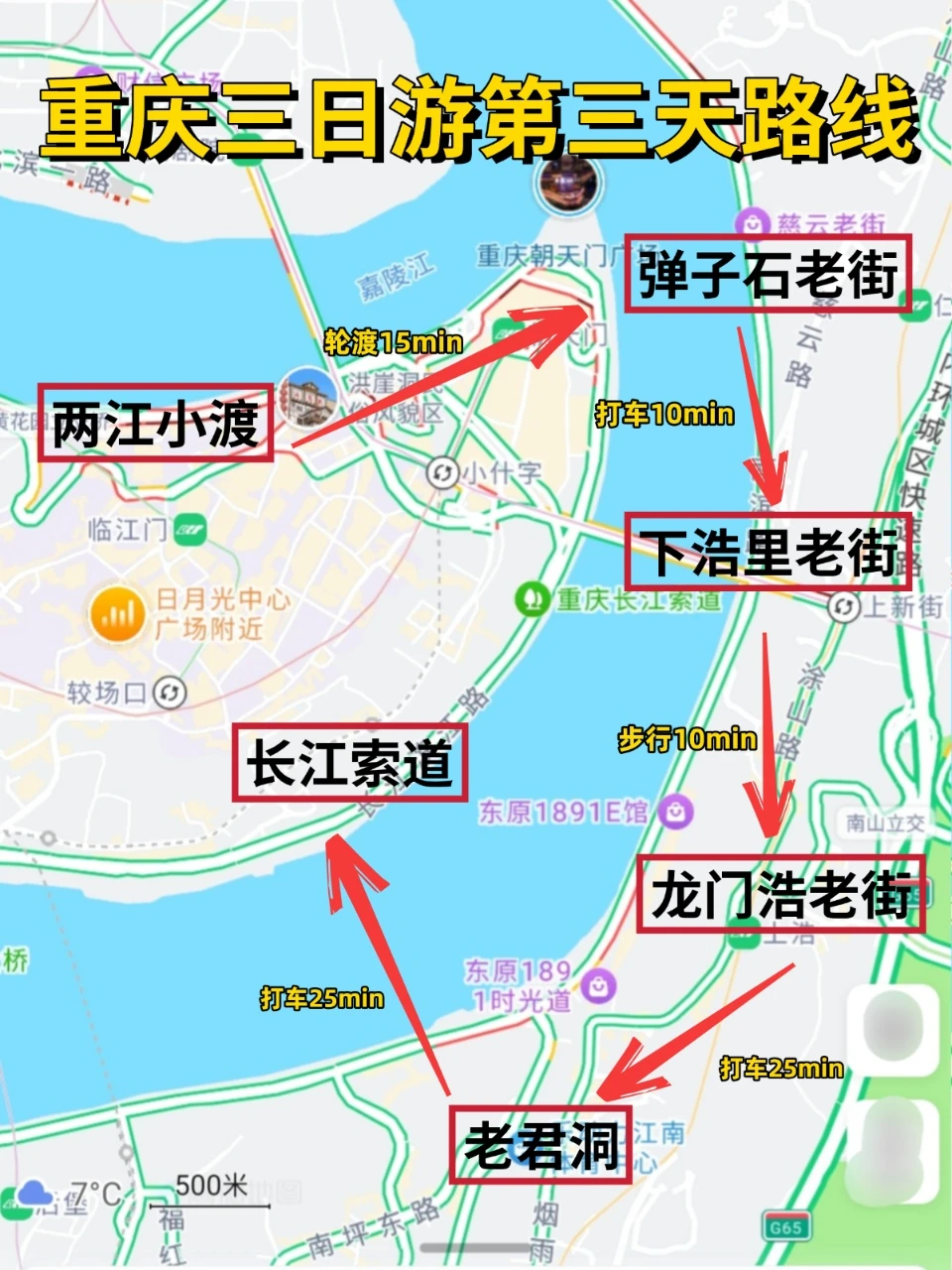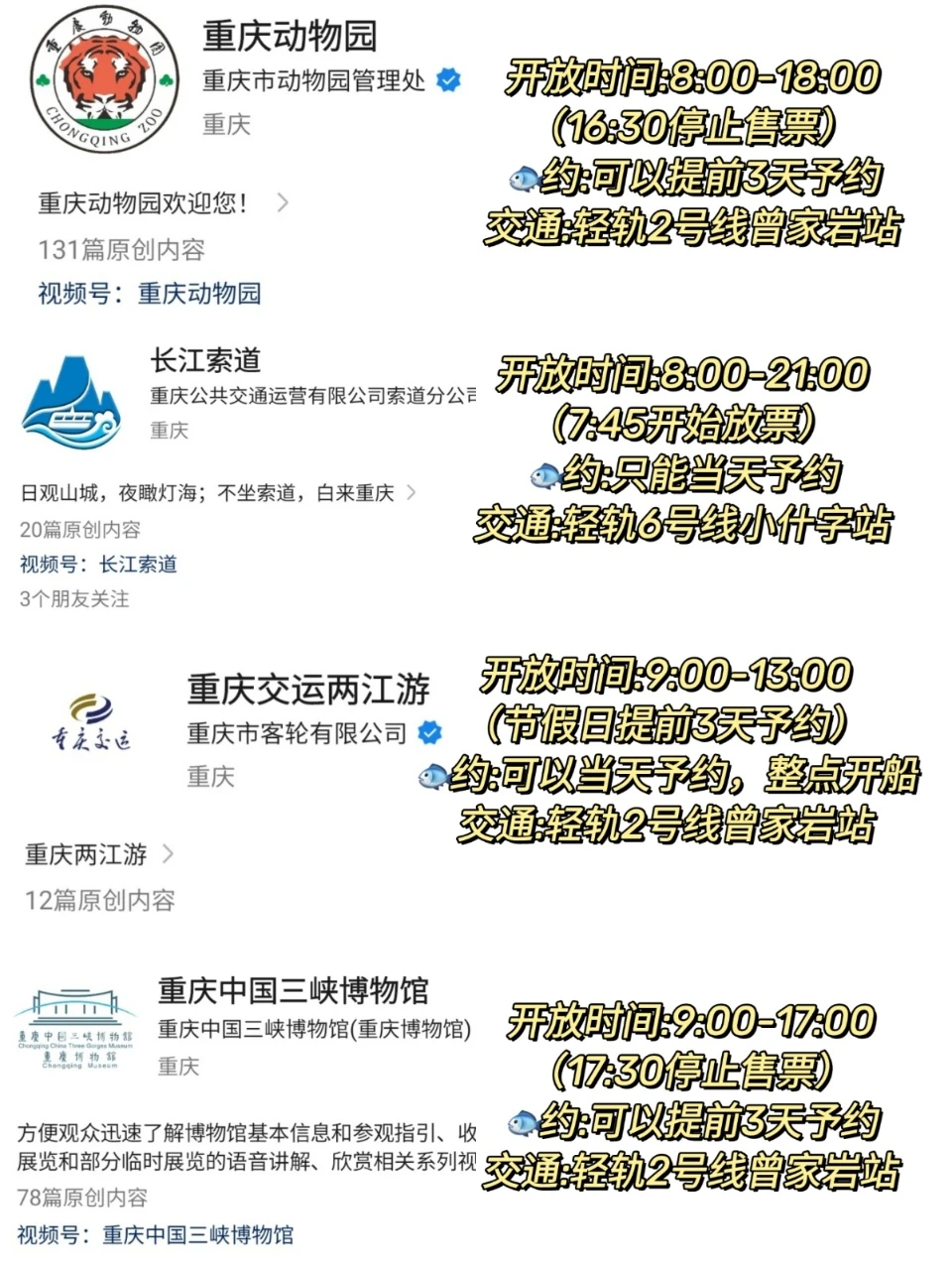 上午:长江索道(提前gzh预约!)→白象居隐秘角落