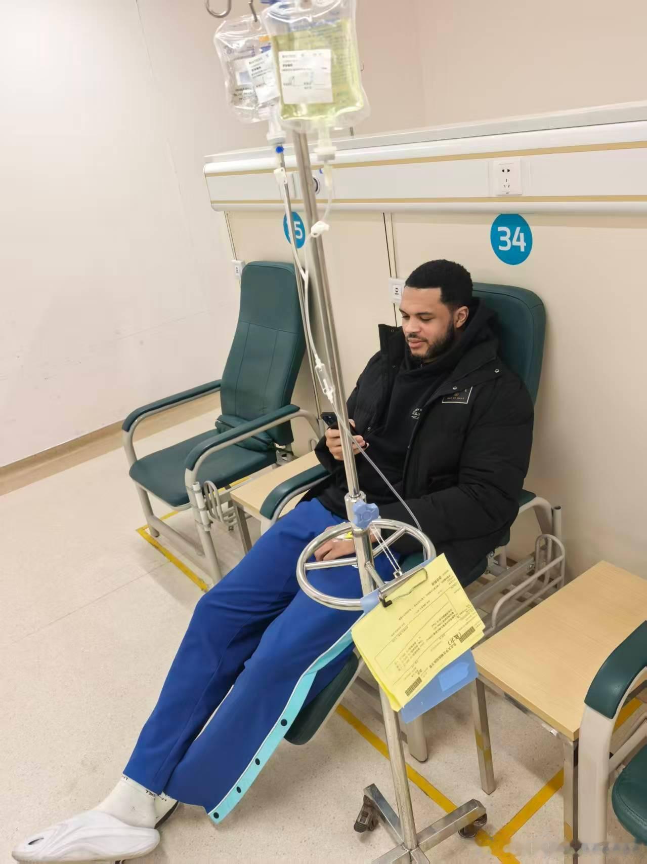 打着点滴的韦瑟斯庞在急诊室看完了整场比赛,你看这表情就知道他为青岛队的兄弟们感到骄傲,赛前他想带病出战,俱乐部坚决让领队带他安心看急诊去,赛后更衣室里砍下31分的米奇也第一时间跟他通了电话,一个劲儿让韦瑟斯庞踏实打点滴