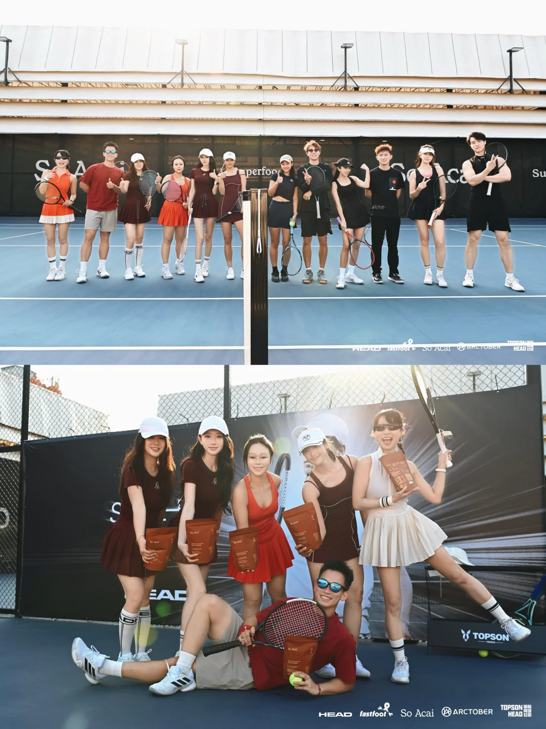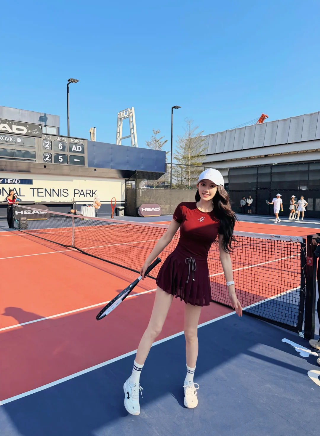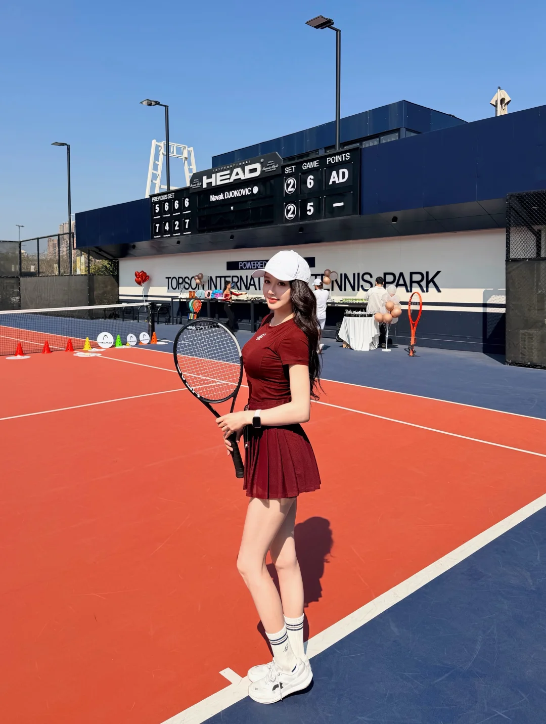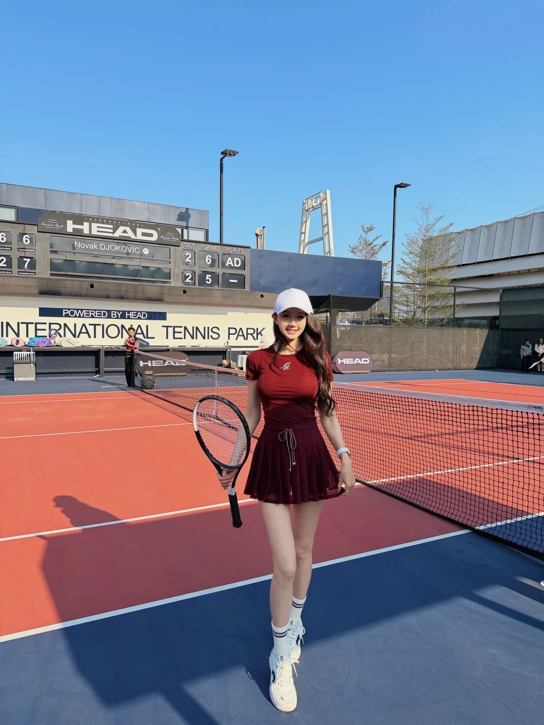 美好的天气 愉快的周末 在Head海德公园这块绝美场地打上了新Head L5 感谢和的邀请 聚集广州这么多优秀的男高女高一起参加活动 用心安排和组织 也一次性试打了Head各种型号的牌子 大家都玩开心了🥳 ! 体验感💯 红色网球穿搭 OOTD: