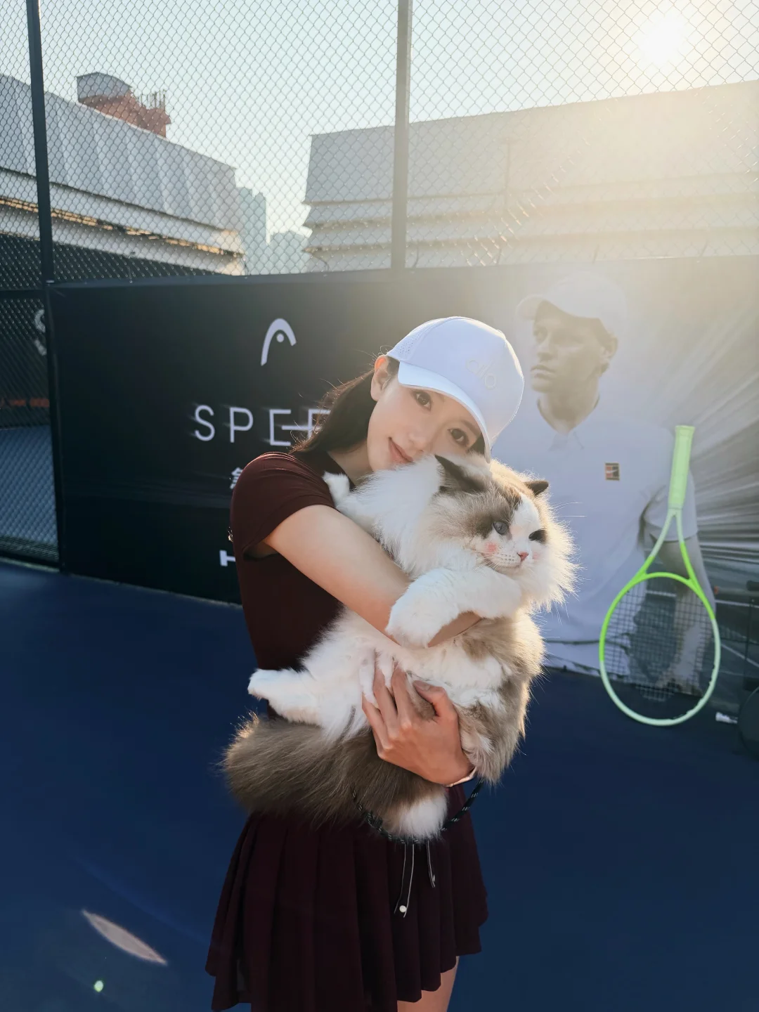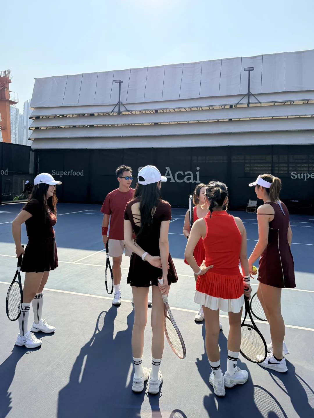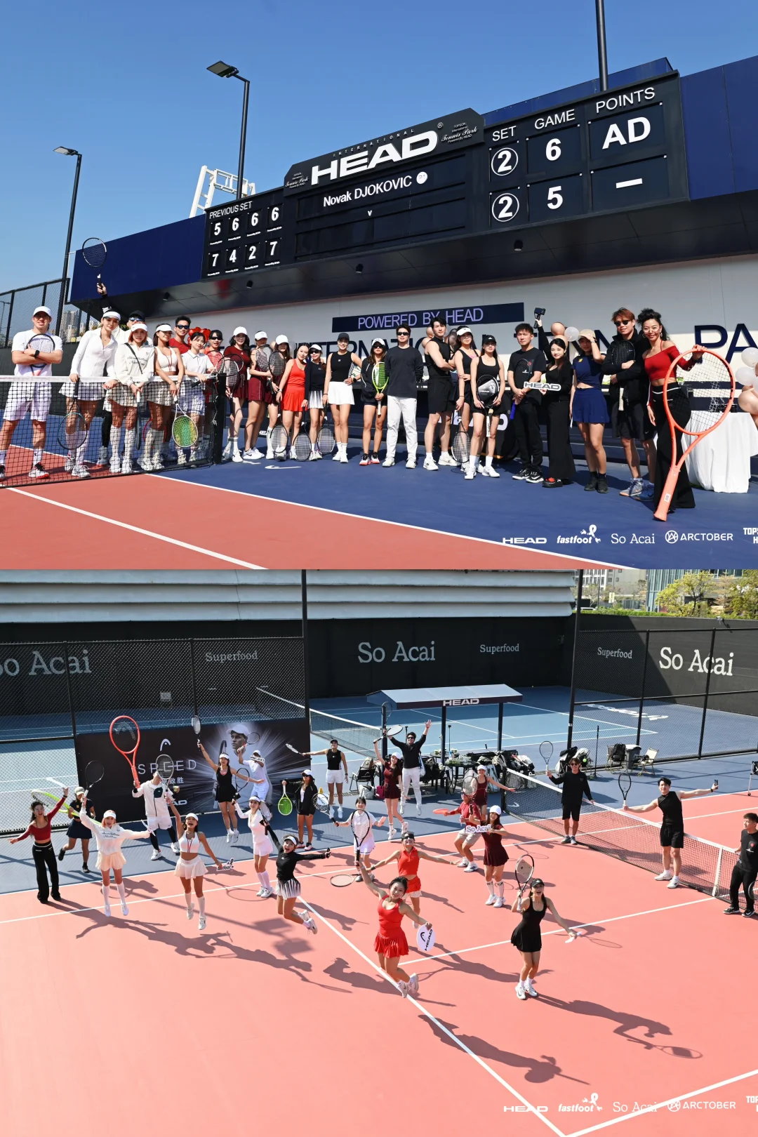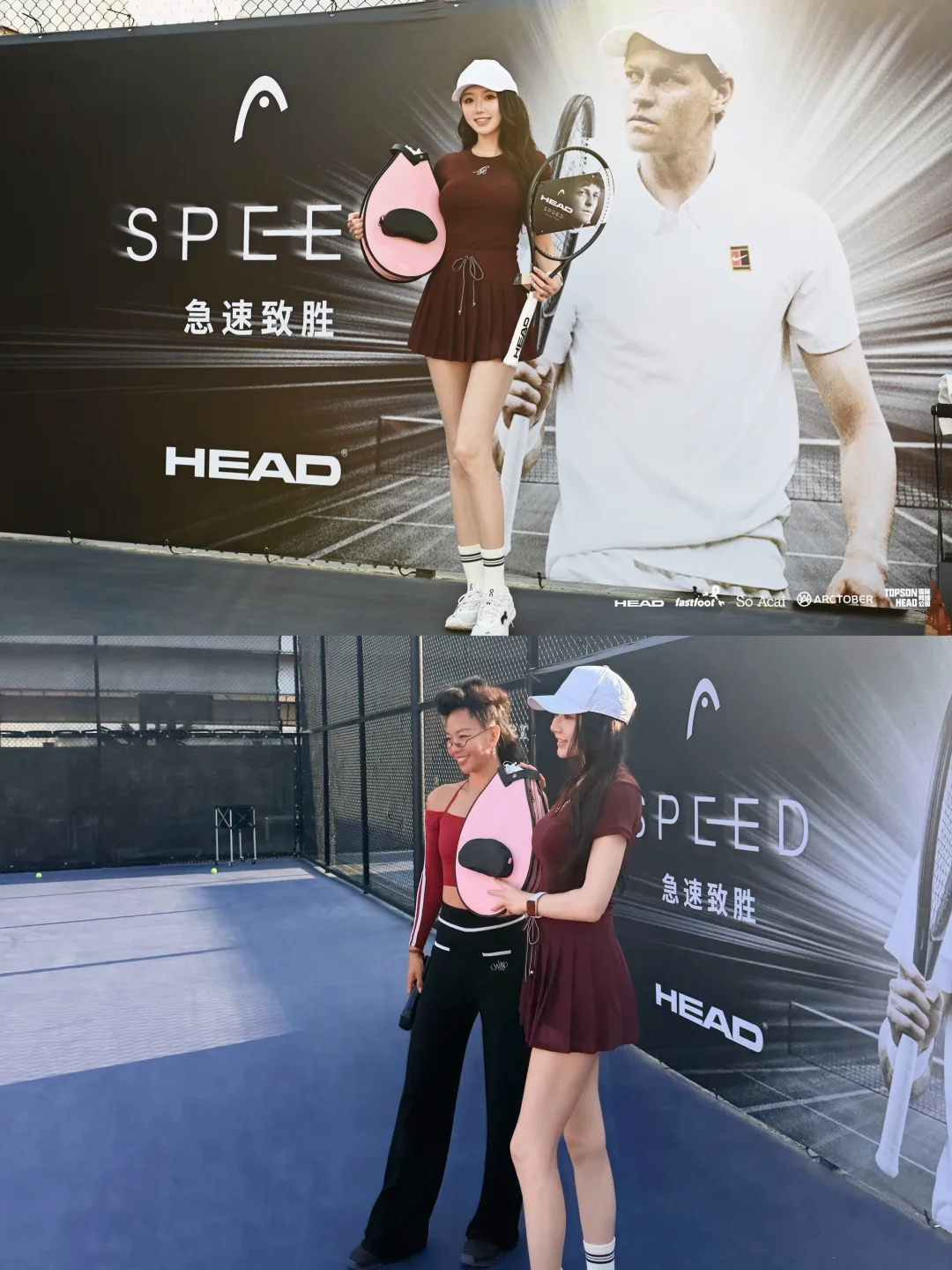 美好的天气 愉快的周末 在Head海德公园这块绝美场地打上了新Head L5 感谢和的邀请 聚集广州这么多优秀的男高女高一起参加活动 用心安排和组织 也一次性试打了Head各种型号的牌子 大家都玩开心了🥳 ! 体验感💯 红色网球穿搭 OOTD:
