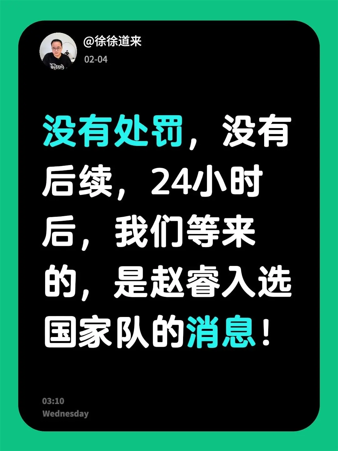 没有处罚,没有后续,24小时后,我们等来的,是赵睿入选国家队的消息!
