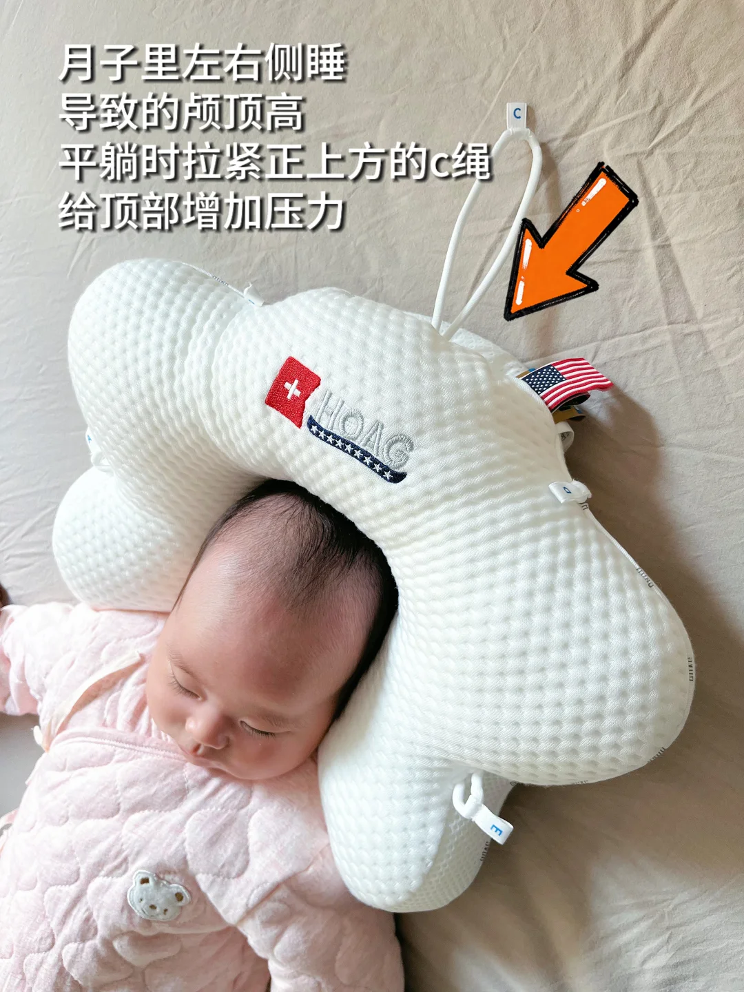 ✅ 平躺:我家娃颅顶偏高,就把定型枕上方绳子抽紧,辅助压一压颅顶