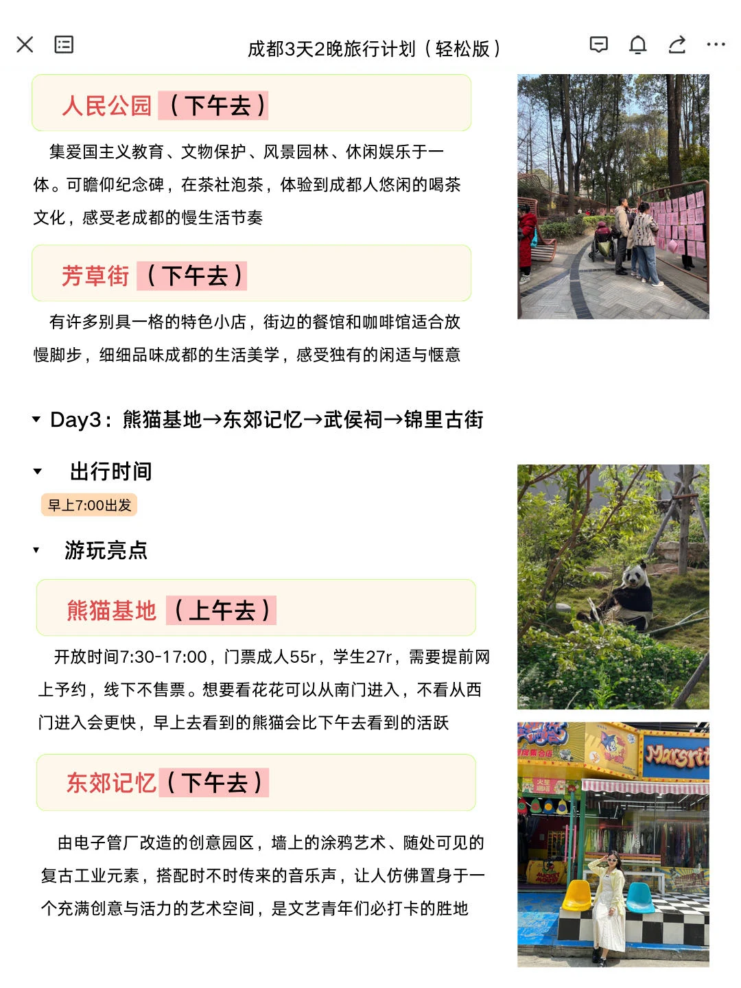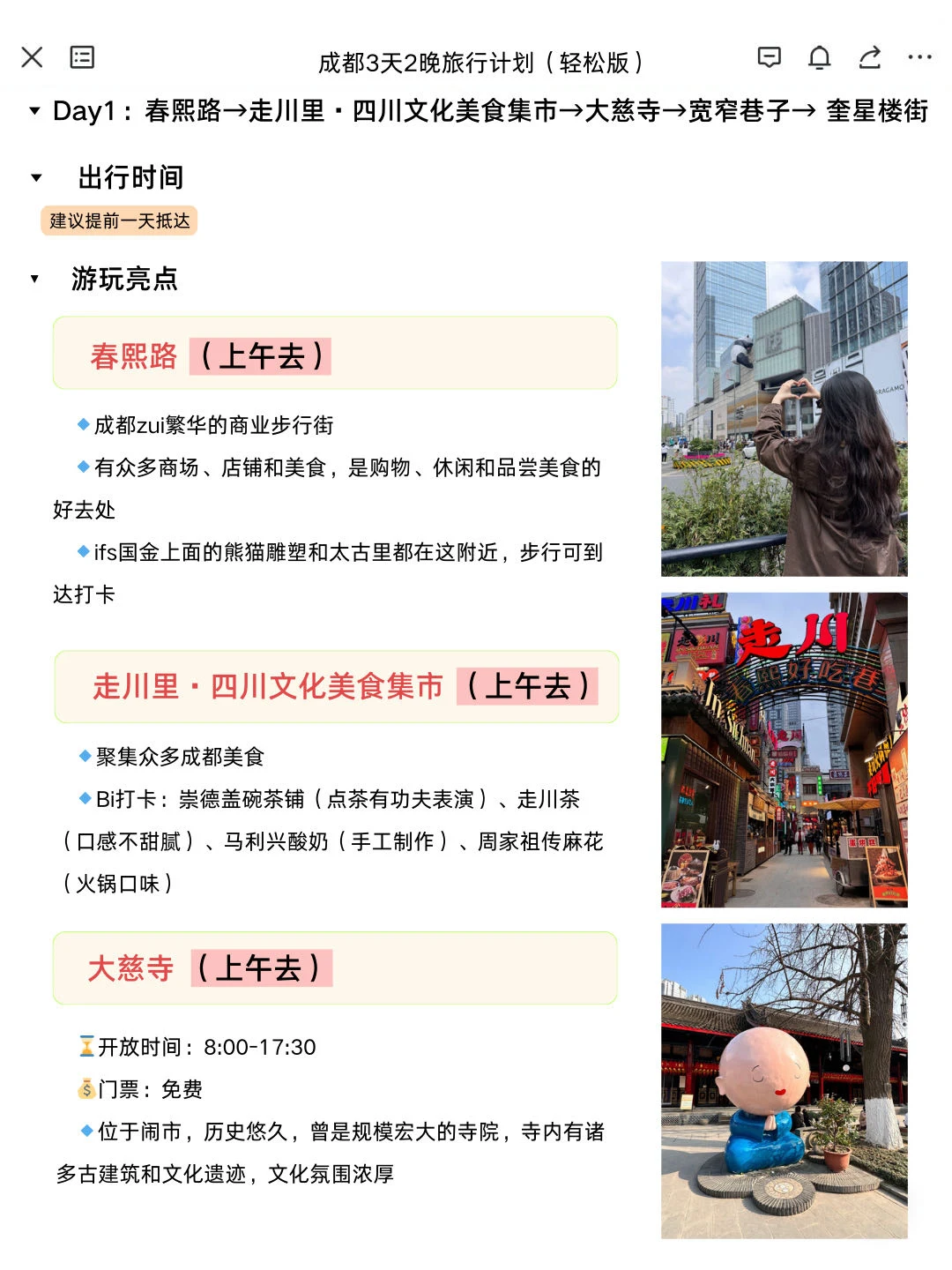 宝子们,成都这座充满魅力的城市,3天2晚就能玩得超精彩!快来收下这份轻松版旅行计划~👀