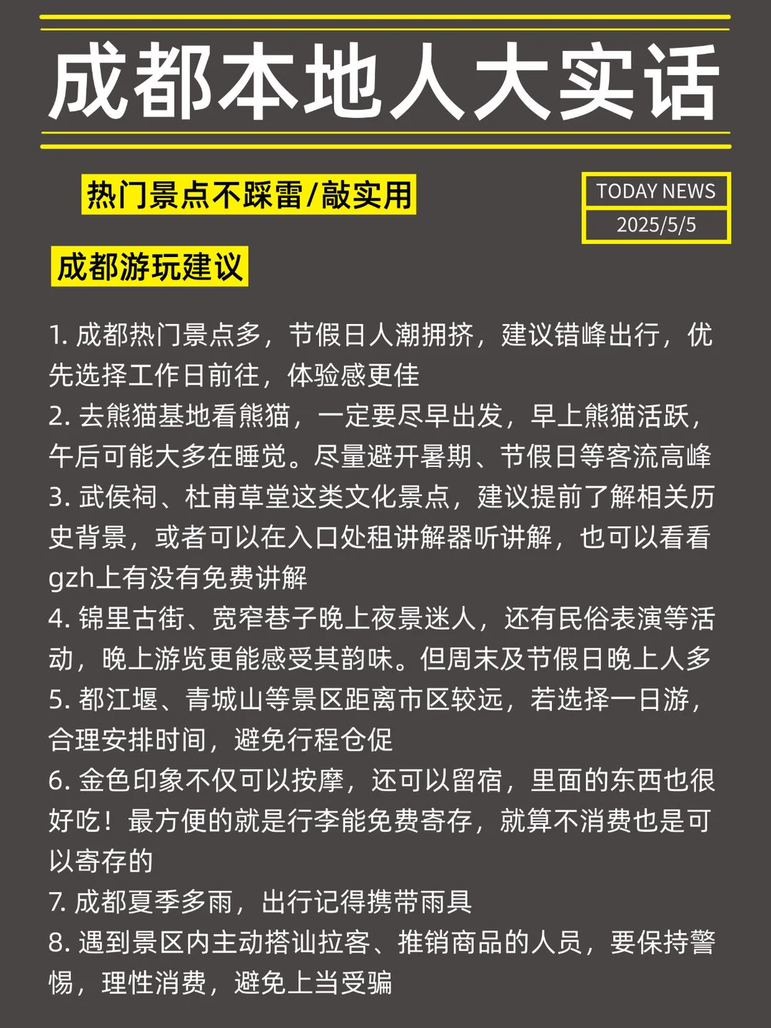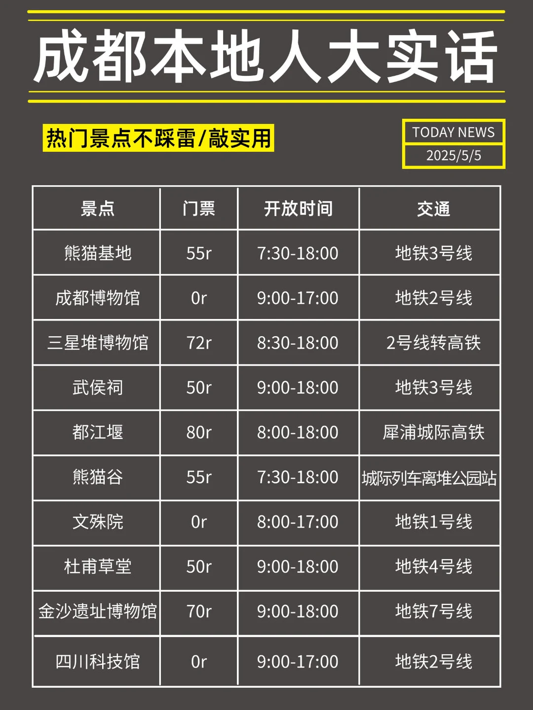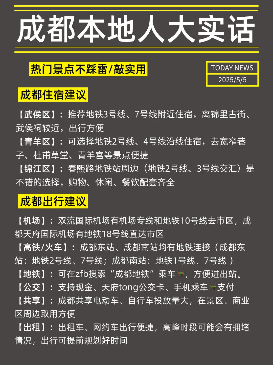 承认吧!那些说成都不好玩的一定是你不会玩🥹 成都不论是景点、交通还是美食,都是旅游属性超强超方便的城市🏙 本土著花了一周整理了这篇成都旅游攻略,一篇说清楚所有旅游需要注意的重点✨