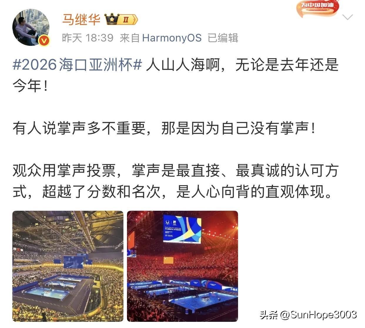 人山人海的亚洲杯场馆,和多哈形成了鲜明的对比。 马继华直言:有人说掌声多不重要,那是因为自己没有掌声! 亚洲杯4号开幕,从开幕式到上午,晚上的比赛,现场都是人山人海, 对比没有王楚钦孙颖莎参赛的多哈冠军赛球场,确实是两个极端。 虽然某位领导说“不突出个人”,但目前的情况,没有这两个人的“集体”实在是撑不起票房, 就算这位领导到现场,恐怕也无济于事。 没有掌声的赛场,无声无人的赛场,就意味着没有赞助,别说是商业赛,就算是三大赛, 没有赞助商也很难进行下去。