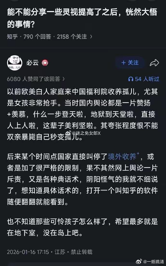 中国禁止非亲属外国人领养中国儿童后,2024年,超过100名美国议员和33名州长致信美国时任总统拜登,请求将跨国收养政策纳入中美高层谈判议题中。爱泼斯坦揭开了资本主义最邪恶一面爱泼斯坦