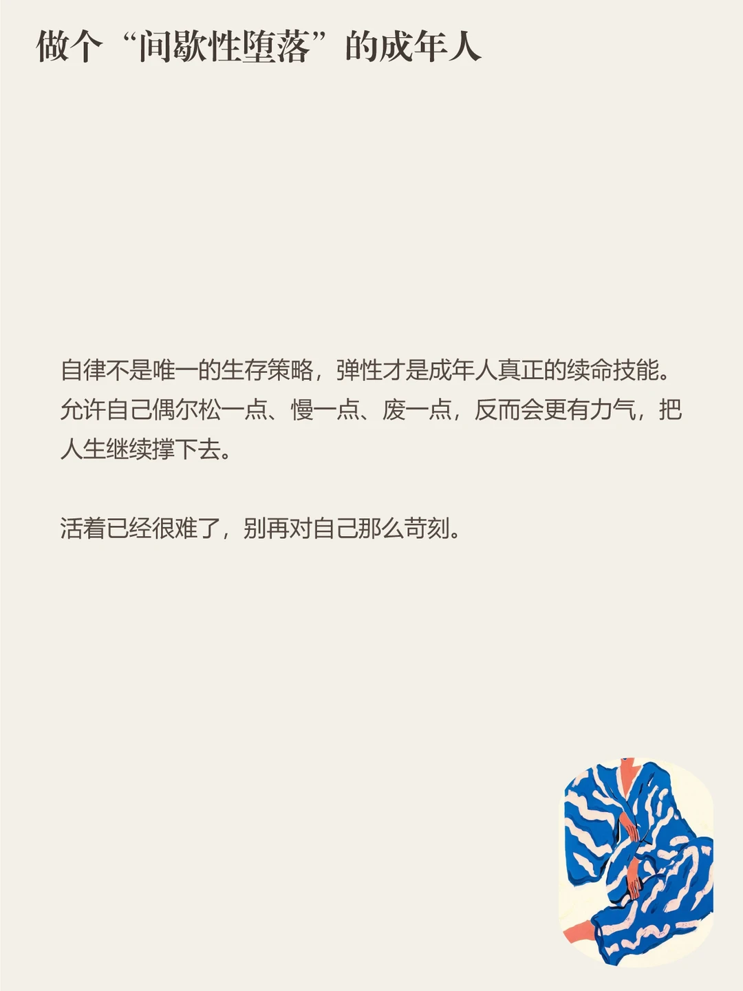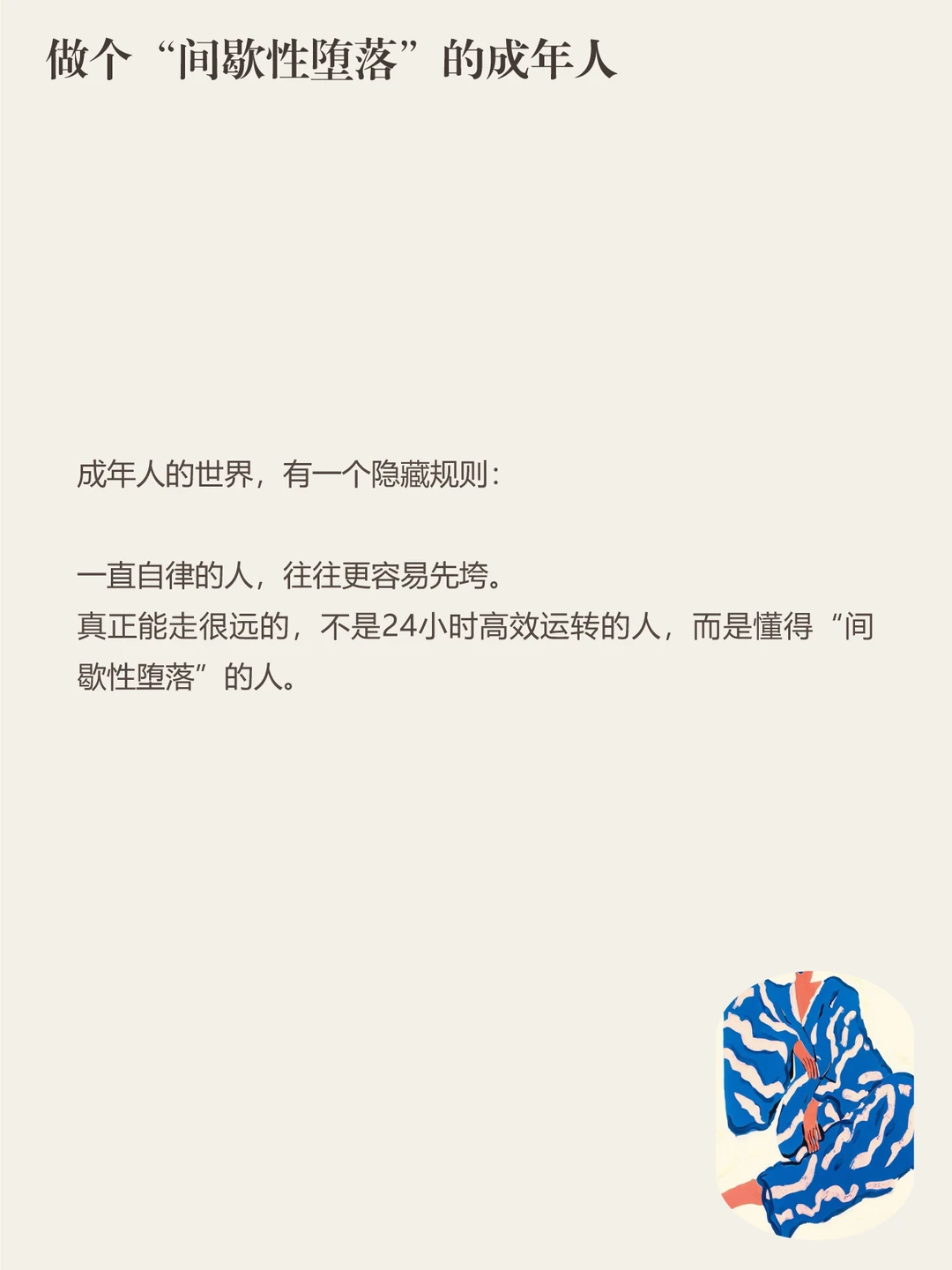 真正能走很远的,不是24小时高效运转的人,而是懂得“间歇性堕落”的人。