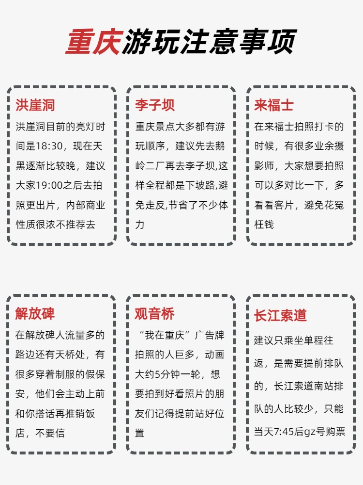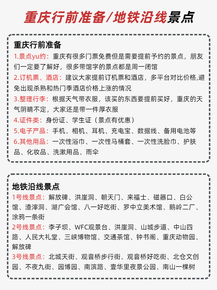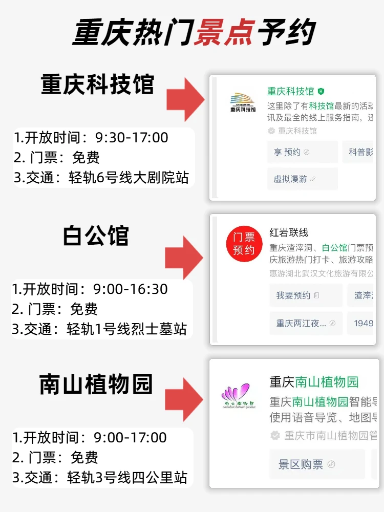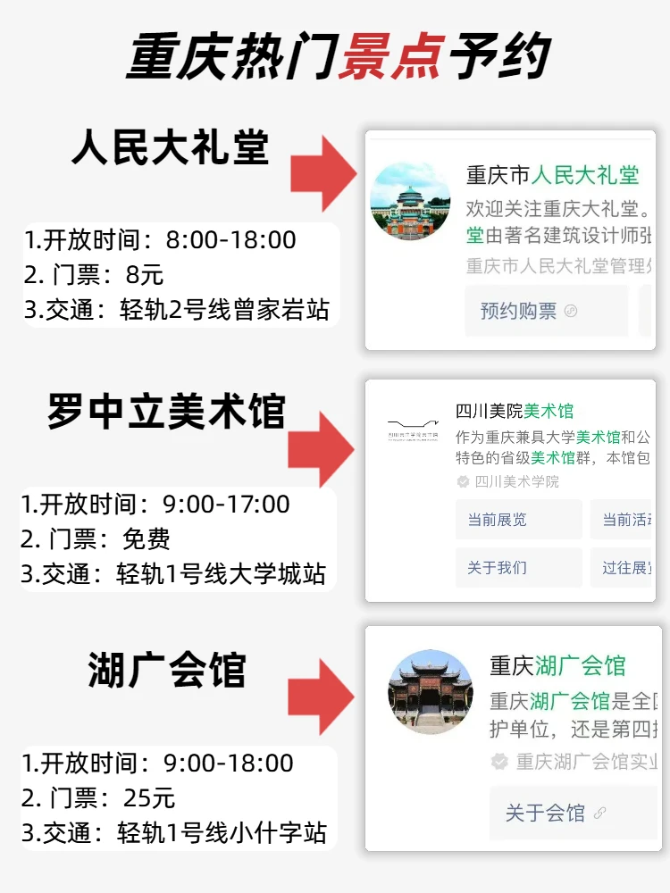 🌟重庆有很多周一闭馆的景点,大家要注意行程安排不要跑空了,如渣滓洞、三峡博物馆、罗中立美术馆、重庆科技馆