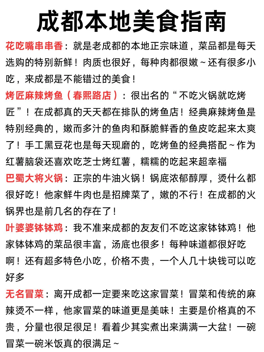 来成都玩就要根据地图🗺️制定路线来走!今天本土著就给大家整理了一下!除了路线,还有交通、住宿、旅游指南,都给大家整理出来啦 - 🍲成都美食指南 烤匠麻辣烤鱼(春熙路店) 🎁更多攻略