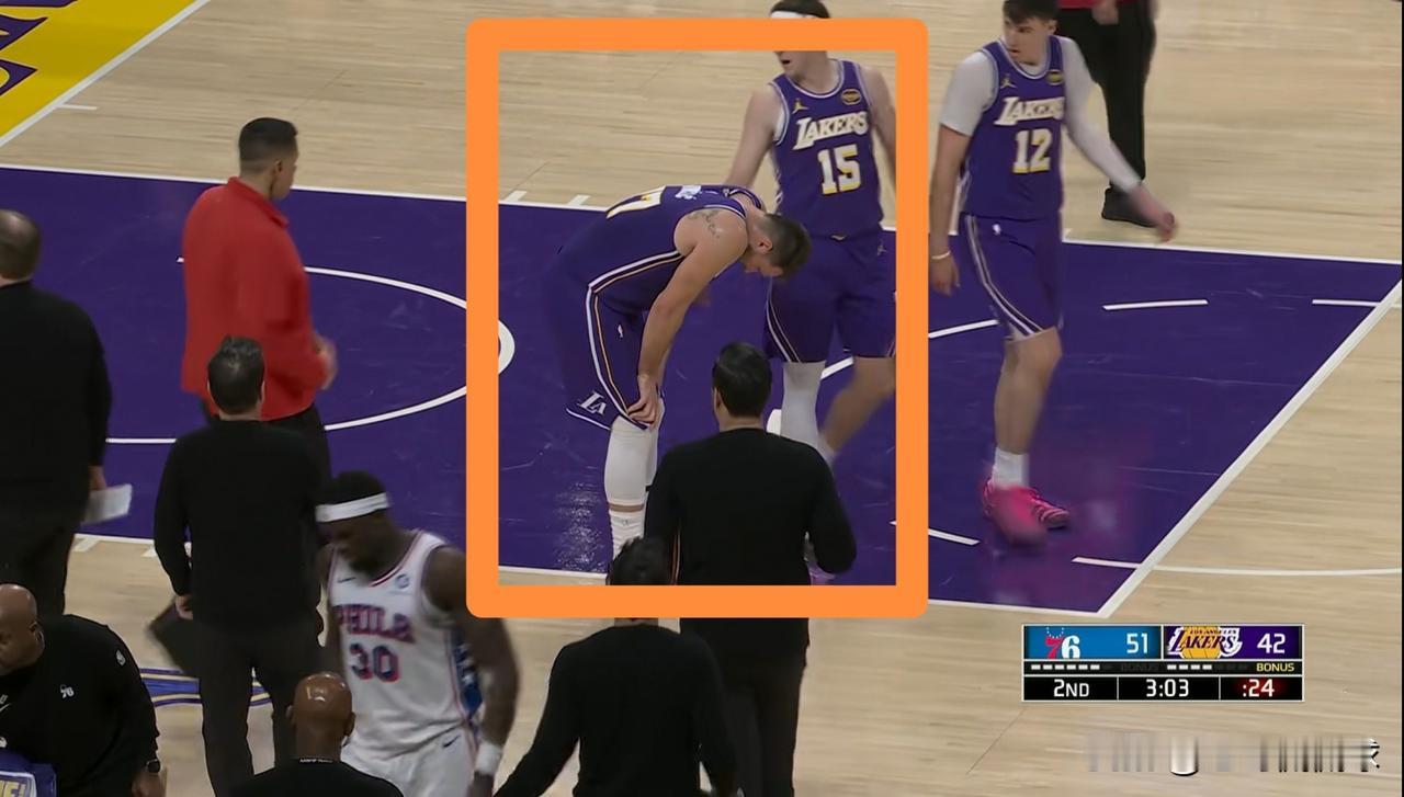 在今天湖人主场迎战76人的比赛中,发生了特别让人揪心的一幕。当时双方的比赛进行到了第二节的三分多钟,湖人巨星东契奇在一次进攻回合中疑似左腿筋拉伤,当转播镜头给到东契奇时,只见他看起来非常的痛苦,让人看着特别的揪心,最终东契奇在无法坚持的情况下返回了更衣室接受检查治疗。 以目前的形势来看,东契奇极有可能会因伤提前退出本场比赛。