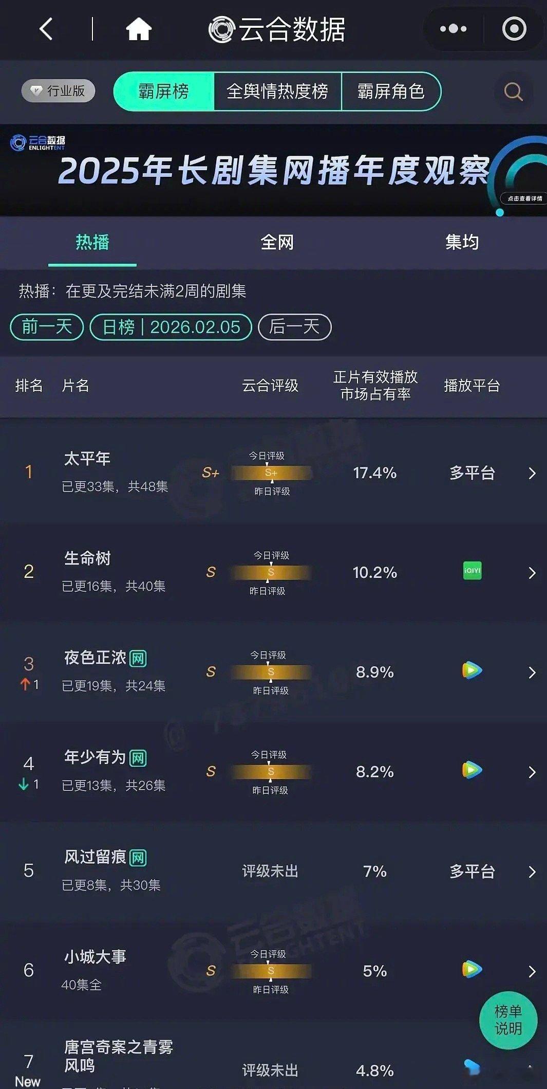 唐宫奇案的云合已经跃至第二了,而生命树云合降到第三,成何体统的云合第四,都在看哪