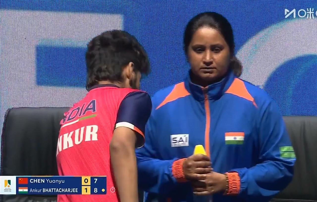 刘国正不客气的说:陈垣宇有些虚了! 这个虚了, 不是说身体虚, 是心虚了。 今天陈垣宇打印度选手巴特查尔吉, 第一局 陈垣宇被人家打了11;5 第二局陈垣宇又是4;8落后, 刘国正气坏了, 说:陈垣宇打的太软了, 你如果不想让对方高质量出手, 自己就得硬起来。 关键是这印度选手前两场都输了, 已经没有晋级希望了, 打陈垣宇还这么硬气!