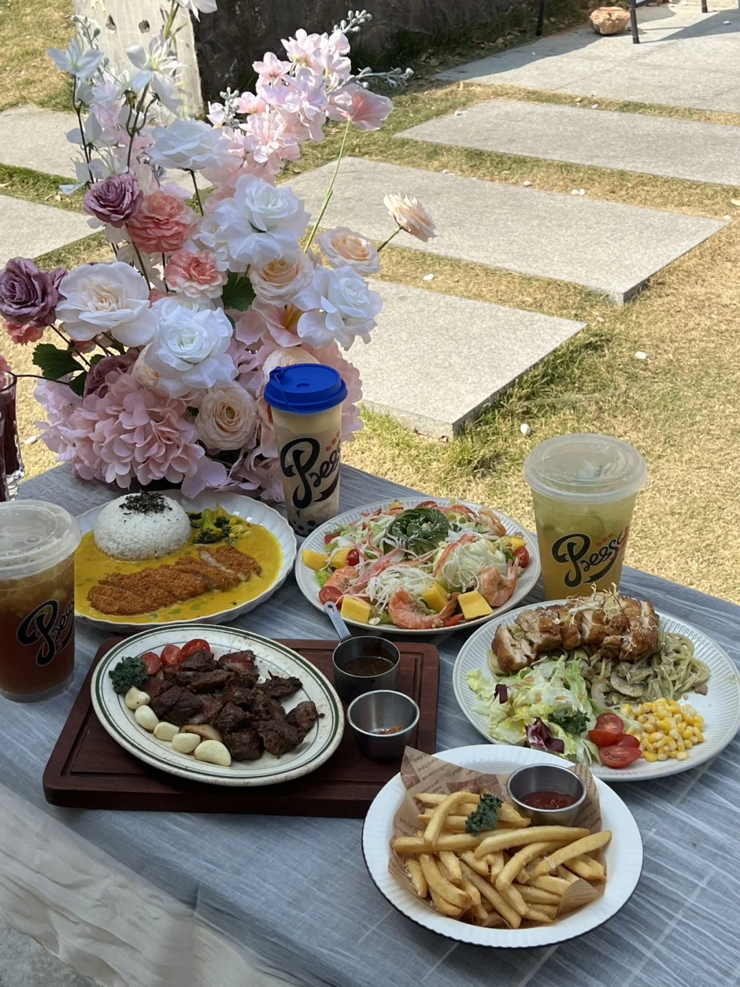 阳光洒下来的时候,随手拿道具花拍餐品,每一张都像杂志内页!